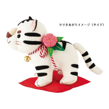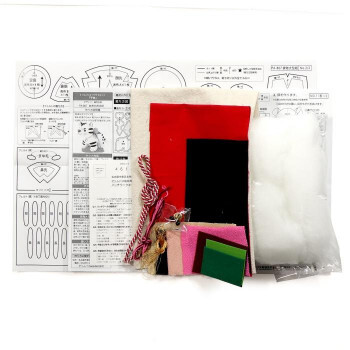 | セット内容 | 表布(5種)、ちりめん(1種)、フェルト(4種)、詰め綿、目ボタン(2個)、飾り紐(1本)、鈴(1個)、ビーズ(5個)、刺しゅう糸(3色各1本)、作り方説明書、実物大型紙 |