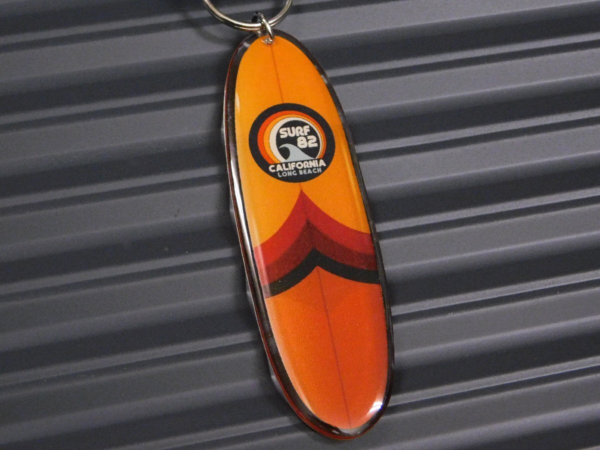 ◆送料\140◆【サーフキーチェーン】※《SURF 82 CALIFORNIA LONG BEACH / オレンジブラウン》 サーフボード アクリル キーホルダー