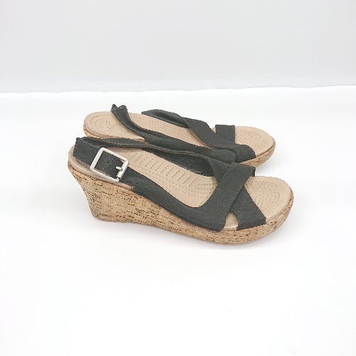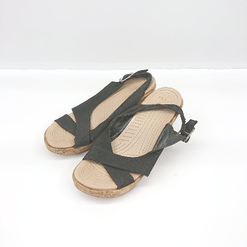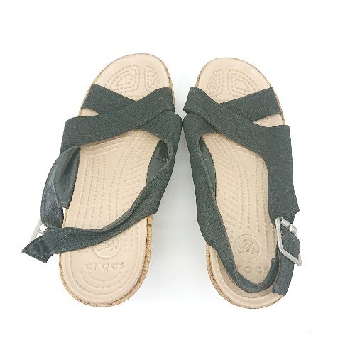 ◇ ⊂ CROCS クロックス ウェッジソール サンダル サイズW5 ブラック レディース E