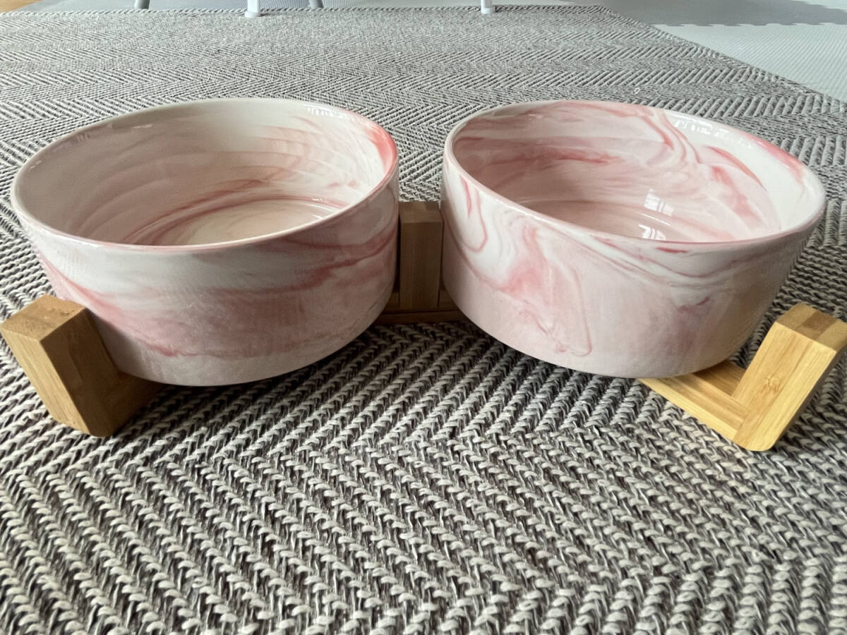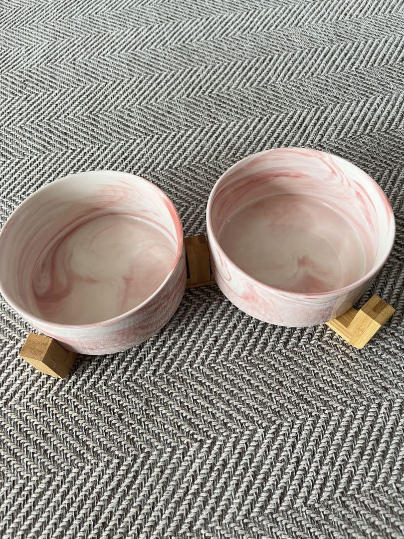 ◆マーブルピンクペット ボウル フードボウル 犬 猫食器 陶器 滑り止め 安定感 取り外し可能 手入れ簡単