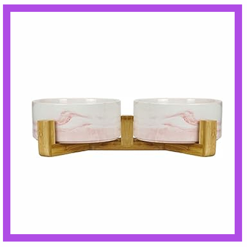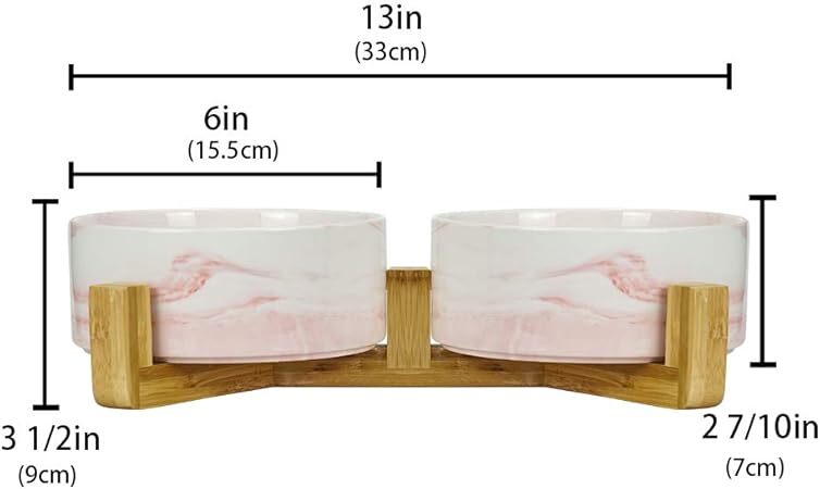 天然で厚手な原木製スタンド付き、非常に高温で焼成された陶器フードボウルはエコ素材ですから匂いがしなく、ペットちゃんが安心に食べたり飲んだりできます。