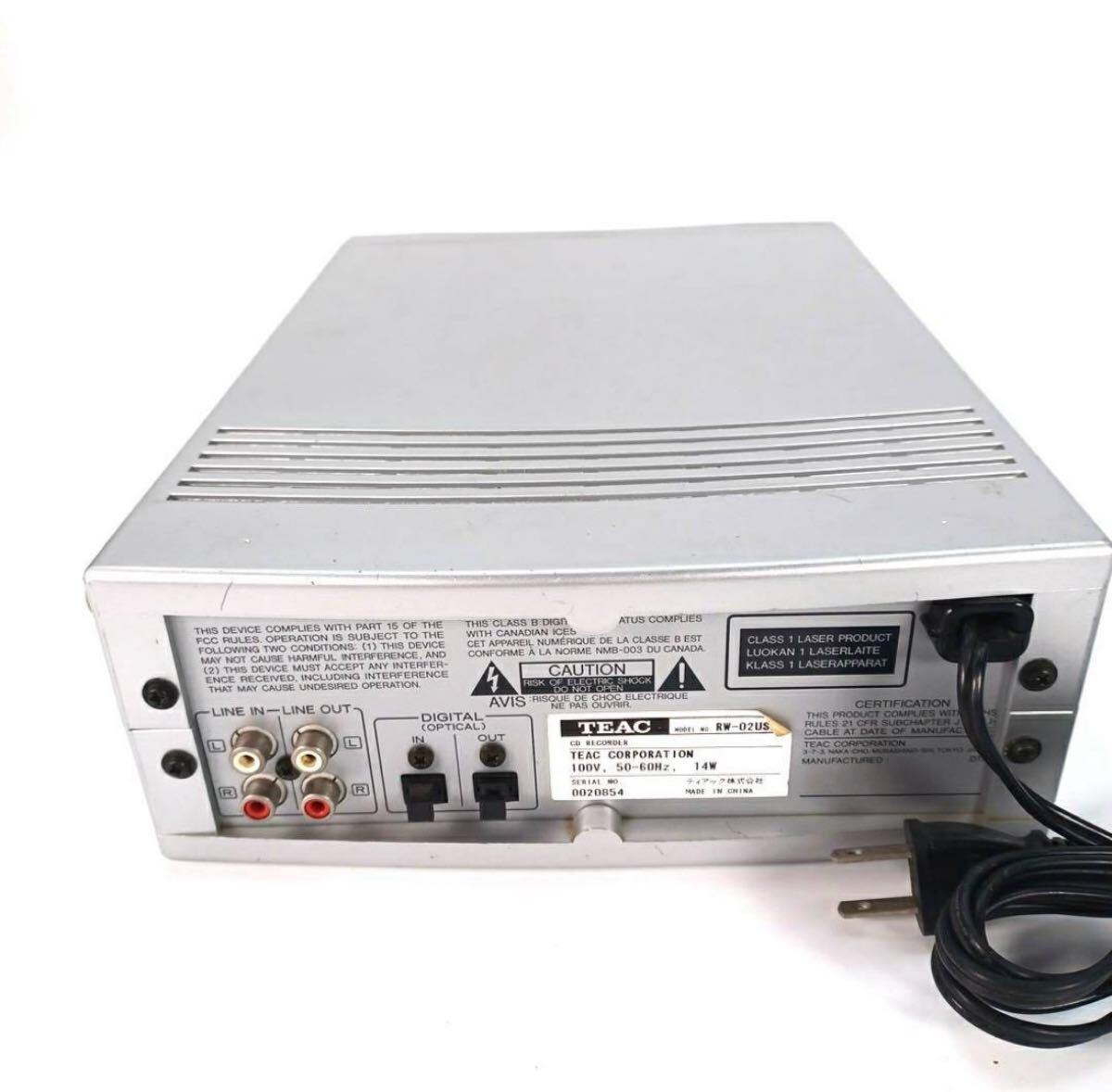 光デジタル、アナログ、両対応のオーディオCDレコーダー TEAC RW-02 USBです。パソコンとUSBケーブルで接続すると、外付けCD-Rリーダー/ライターとしても使えます。