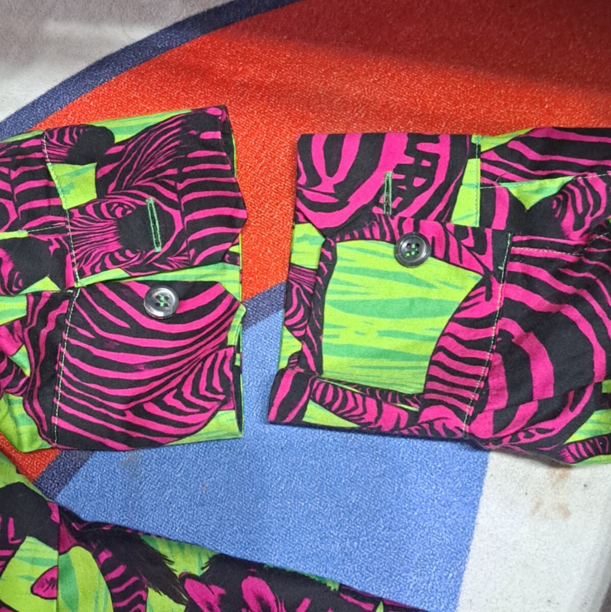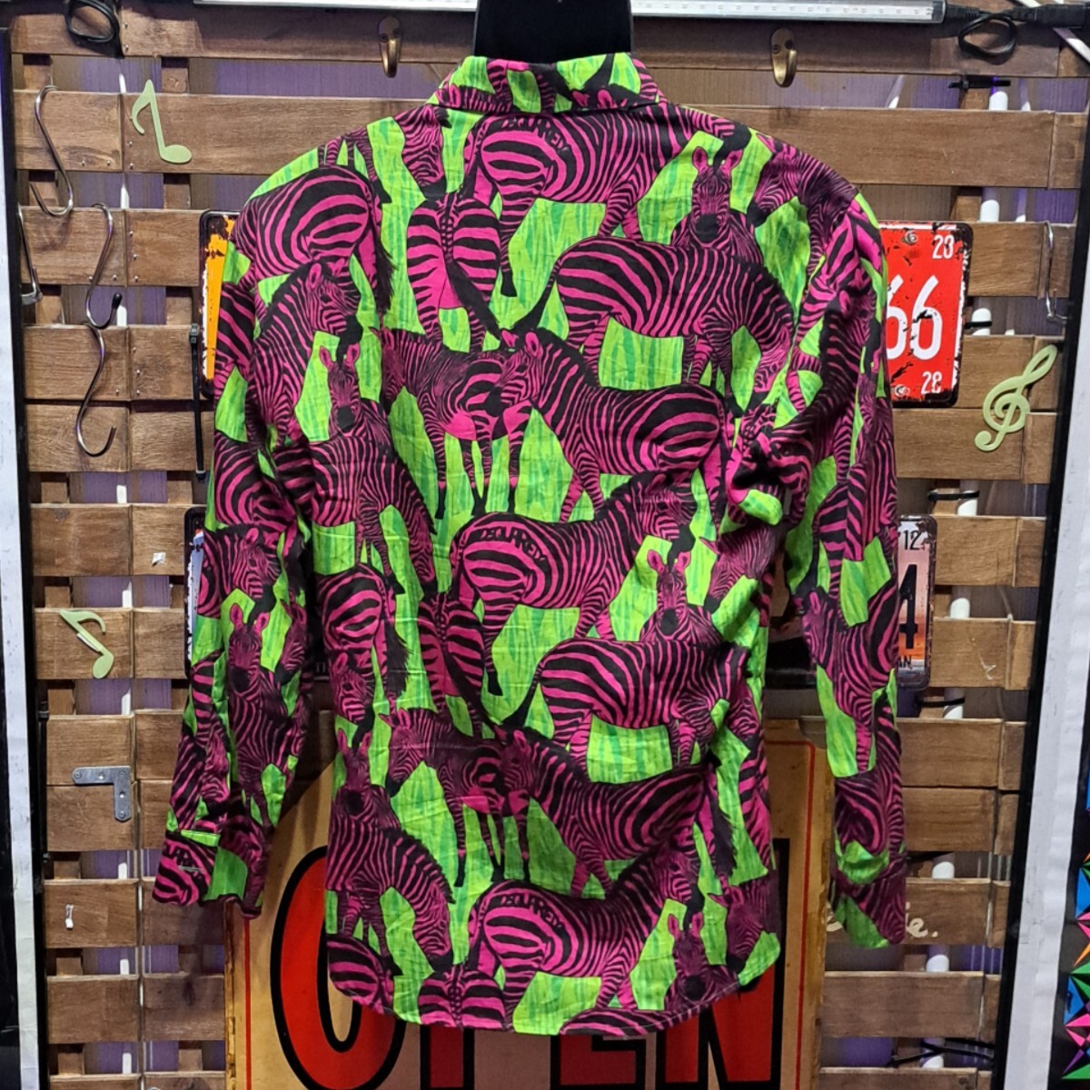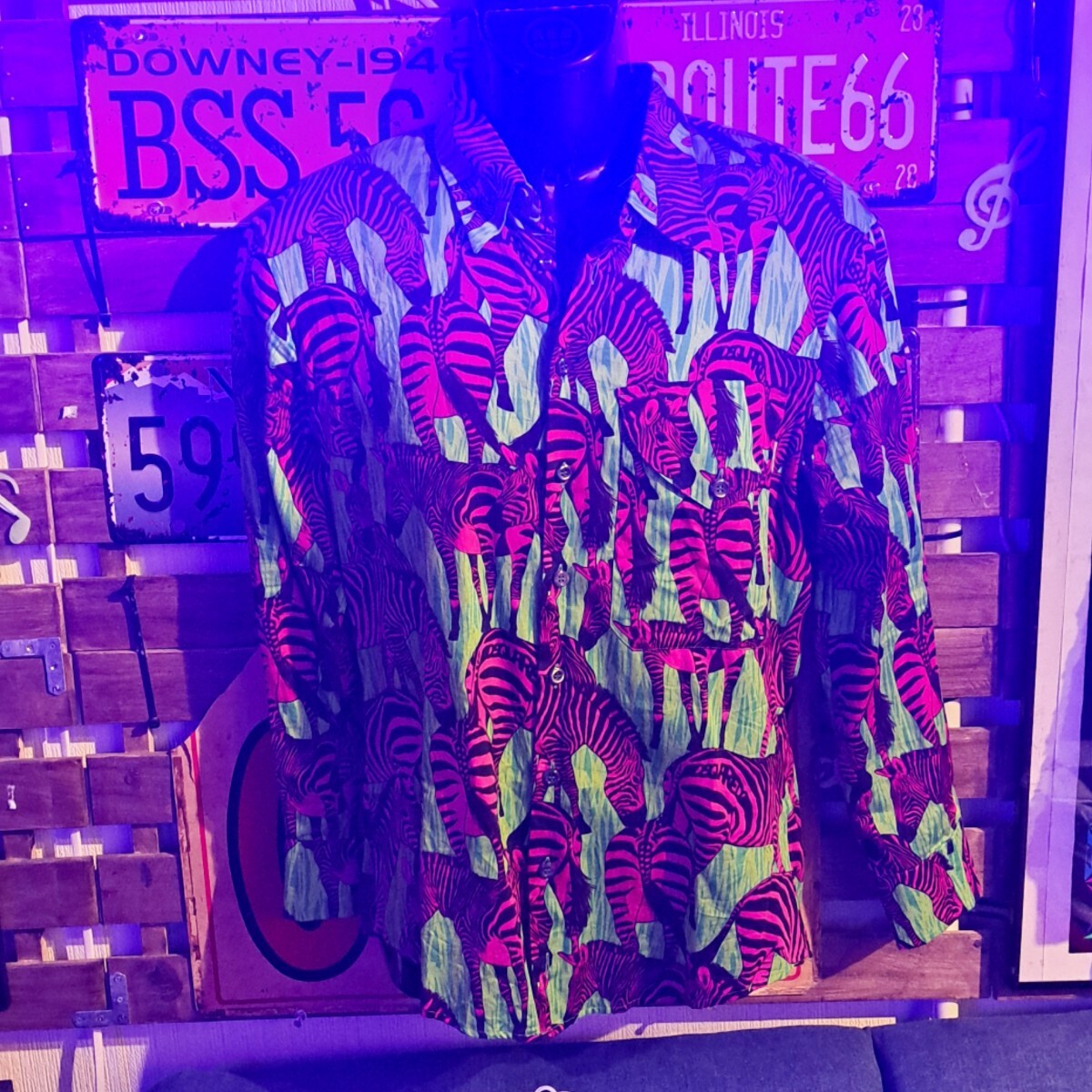 ブラックライトやブルーライトでより際立つネオンカラーの総柄ゼブラが魅力!