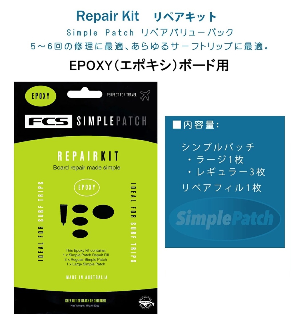 | 商品名 | 送料無料 FCS シンプルパッチサーフボード修理キット(エポキシ) 新品 |