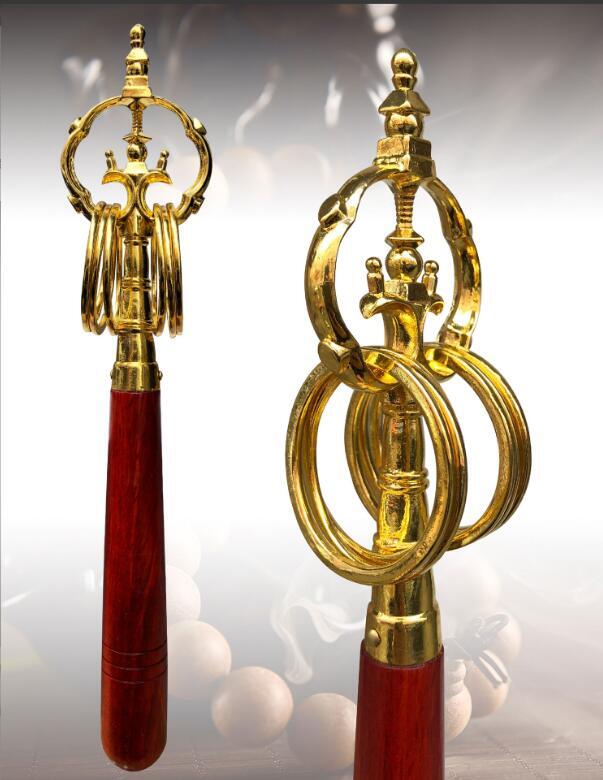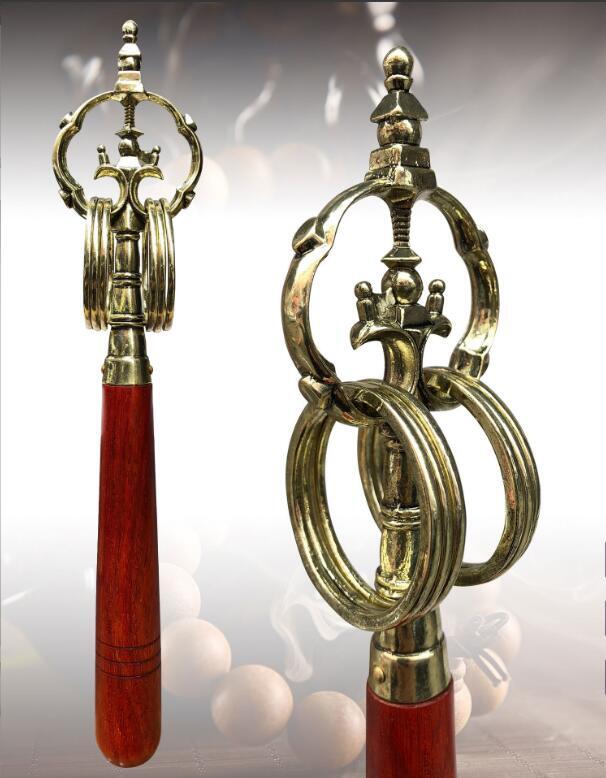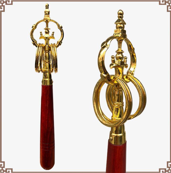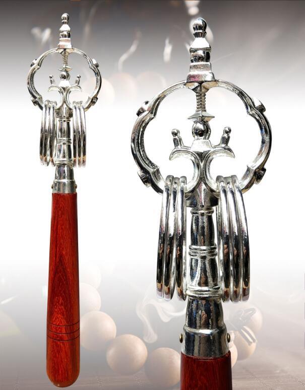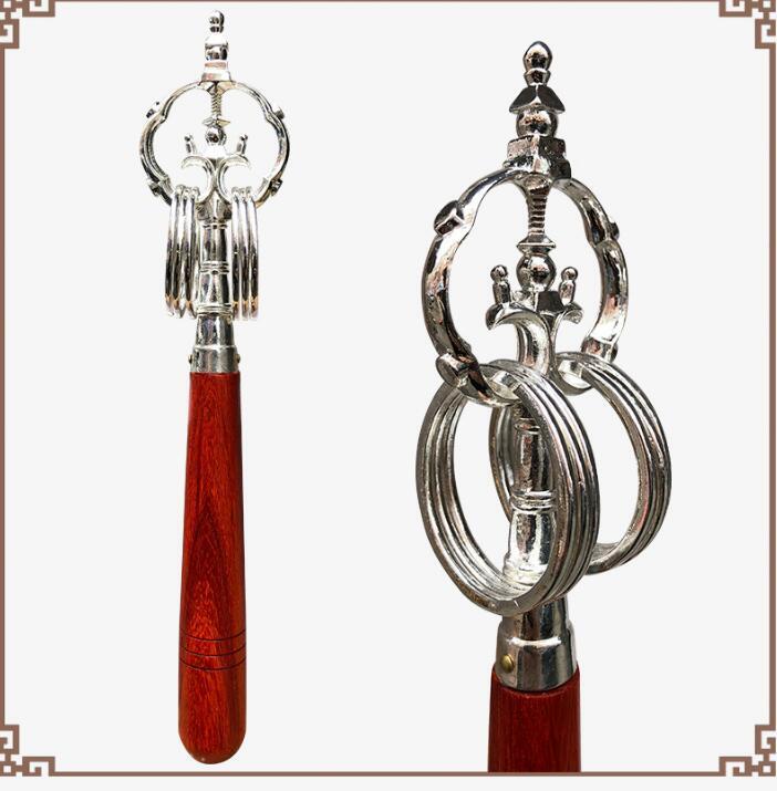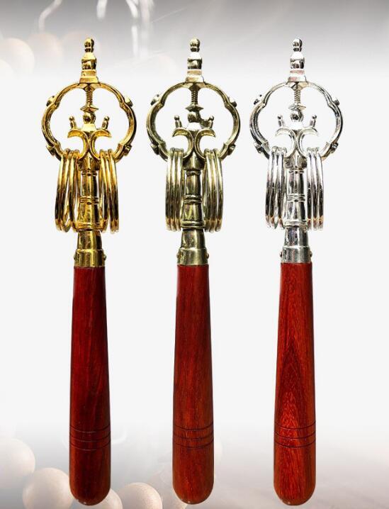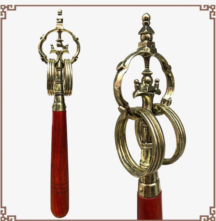 新入荷 禅杖 密教法具 錫杖 無垢材ハンドル 合金法杖 仏具 コンパクト 寺院仏具26CM しゃくじょうお色選択可