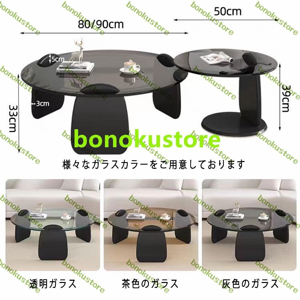 JXHNZYQ 丸テーブル ガラステーブル コーヒーテーブル、ローテーブル ガラス、ローテーブル、強化ガラスコーヒーテーブル、リビングルーム用ラウンドコンビネーションコーヒーテーブル、軽量高級コーヒーテーブル、ファッショナブルなコ 50CM サイドテーブルE
