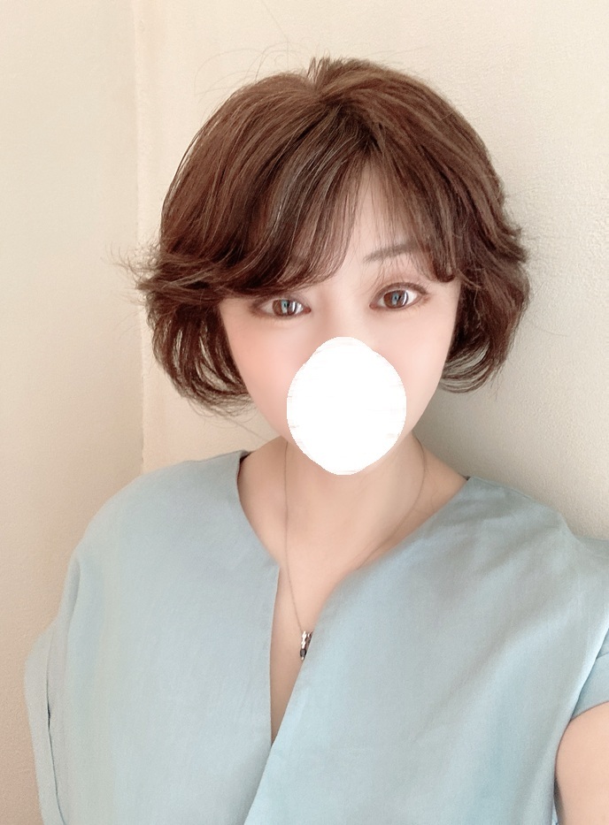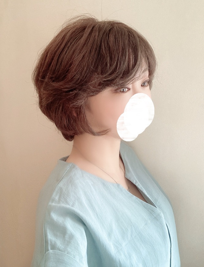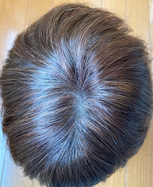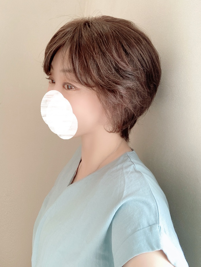 ■髪の長さ(全てキャップ際から):前髪約12cm、サイド(もみあげ)約11cm、ネープ(襟足)約6.5cm、トップ約16cm