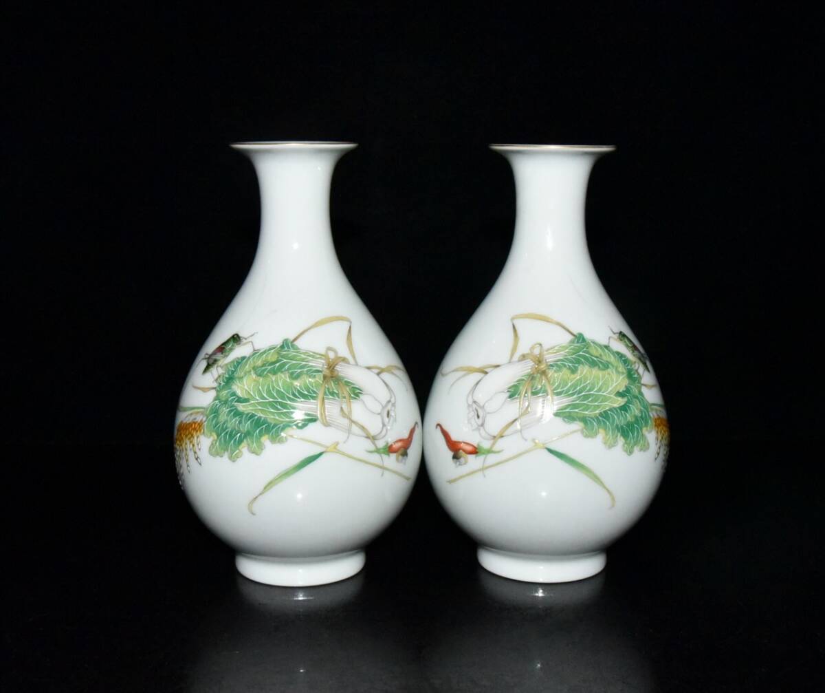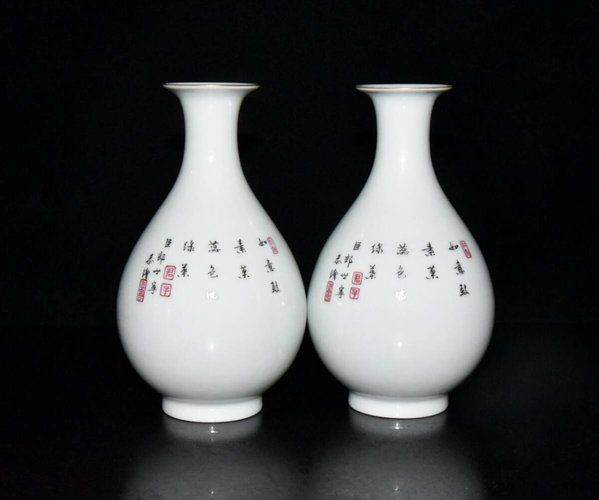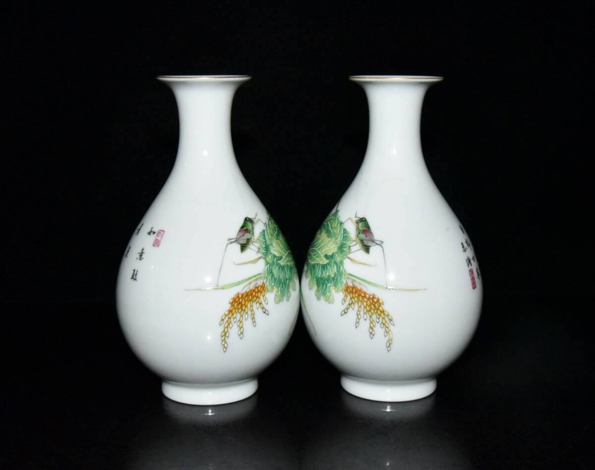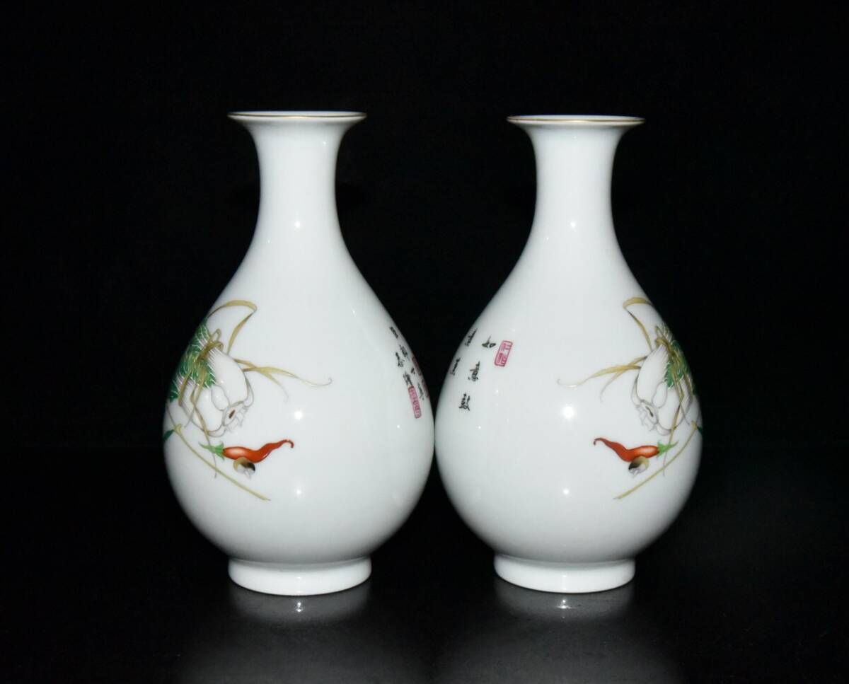 | 【蔵友館蔵品・清・雍正年製款・古陶瓷品・琺瑯彩・百財紋・玉壺春瓶一對・陶藝】・古董品・中国古玩・時代物・希少珍品・中国時代美術 |