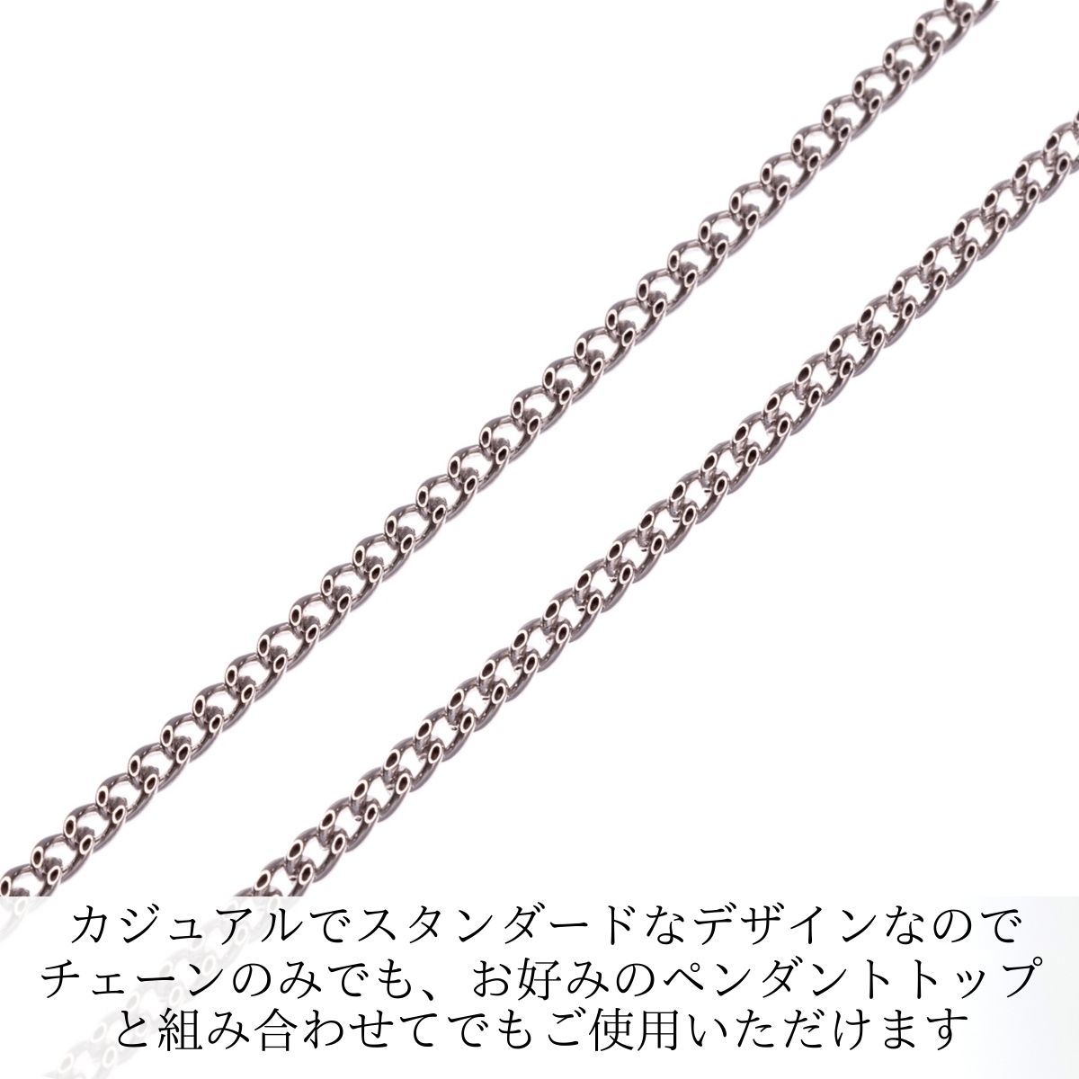 また、シンプルなデザインなのでどんなトップにも合わせやすいのが特徴です。お気に入りのトップを合わせていただくことはもちろんのこと、トップを付けずにチェーンだけそのまま付けていただいてもオシャレにご使用いただけます。