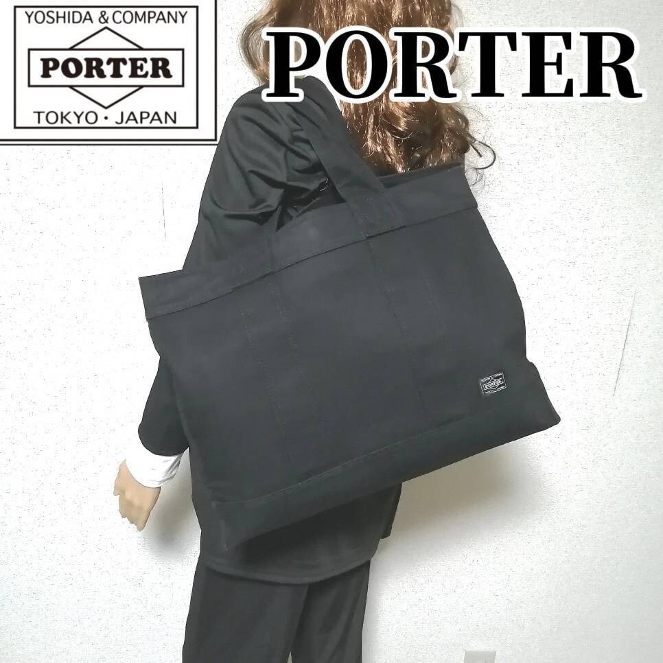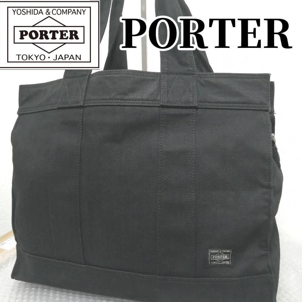 A4収納可【美品】PORTER ポーター トートバッグ 黒 ブラック 正規品 肩掛け 通勤 通学