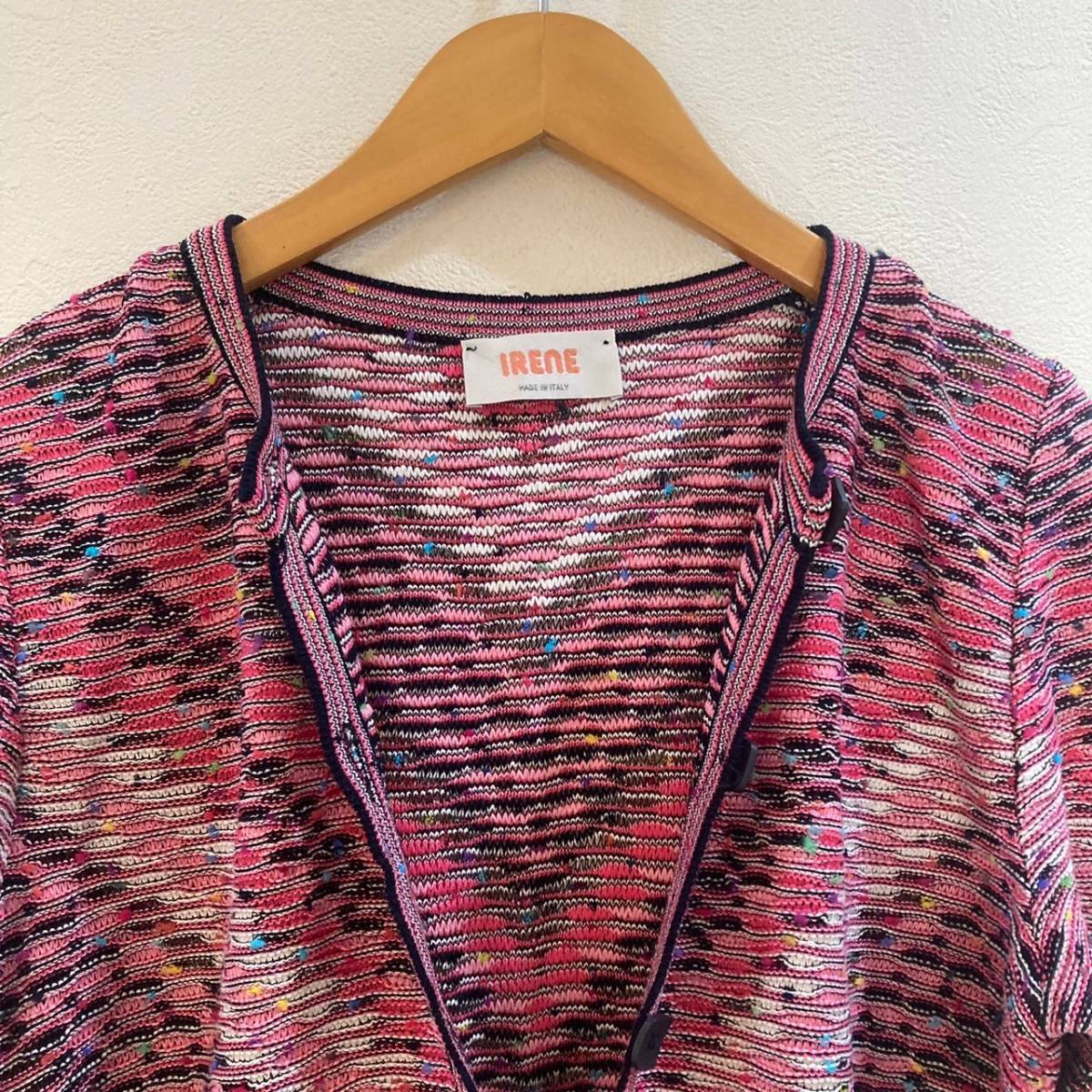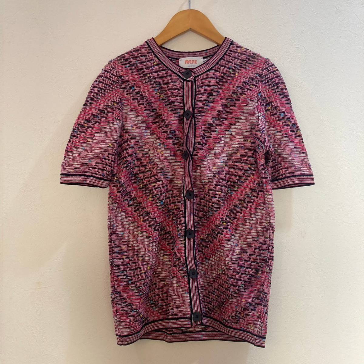 商品: IRENE/ 半袖ボーダー柄ニットカーディガン ピンク レディース F