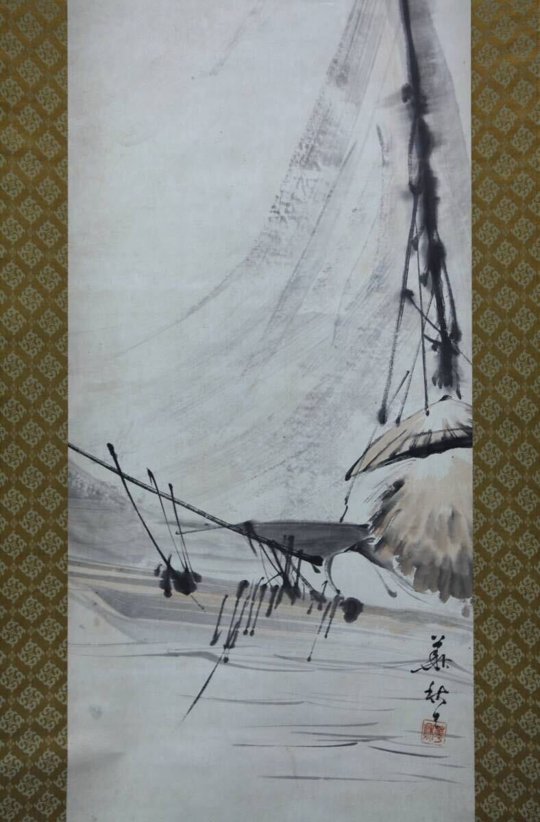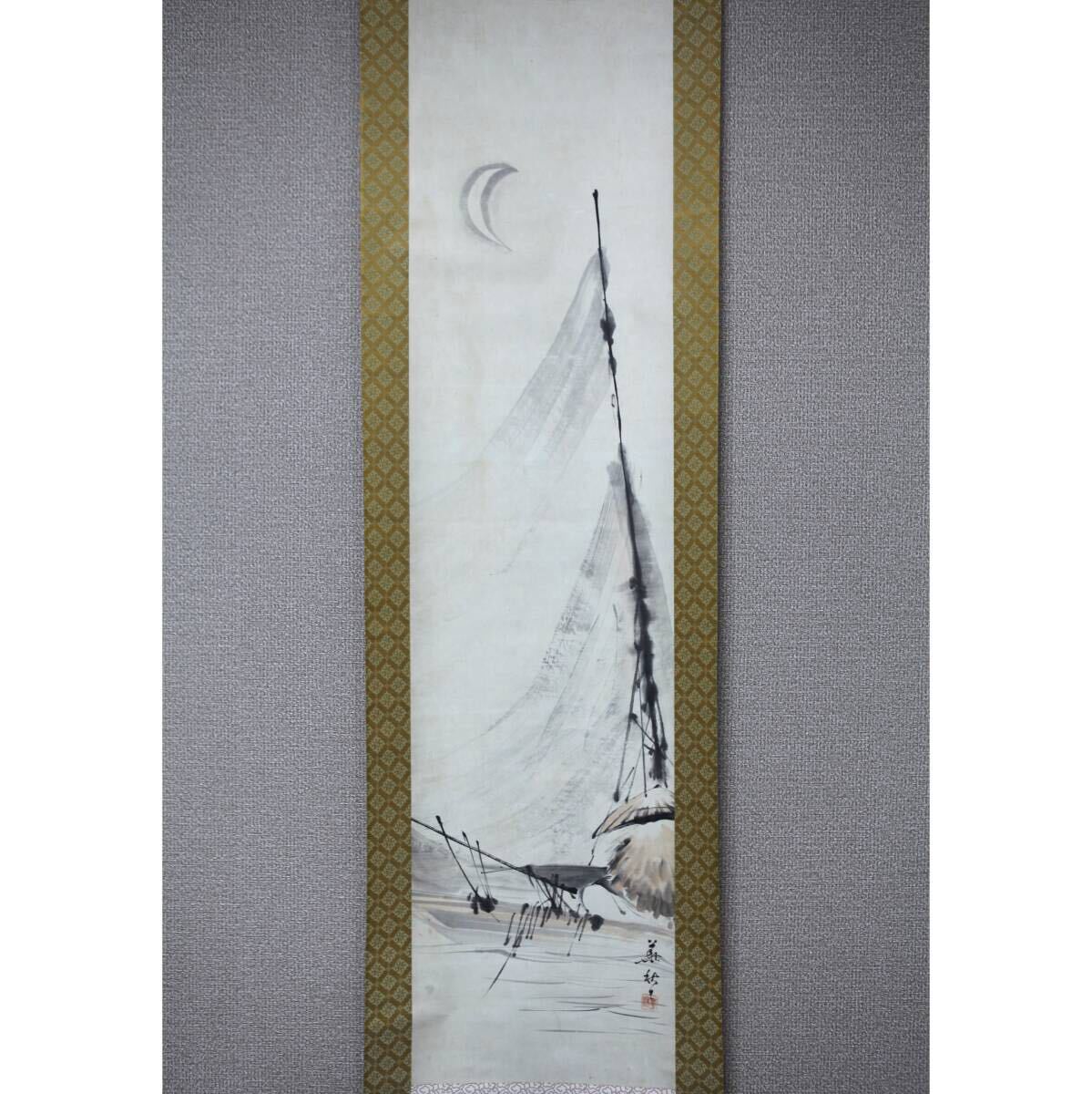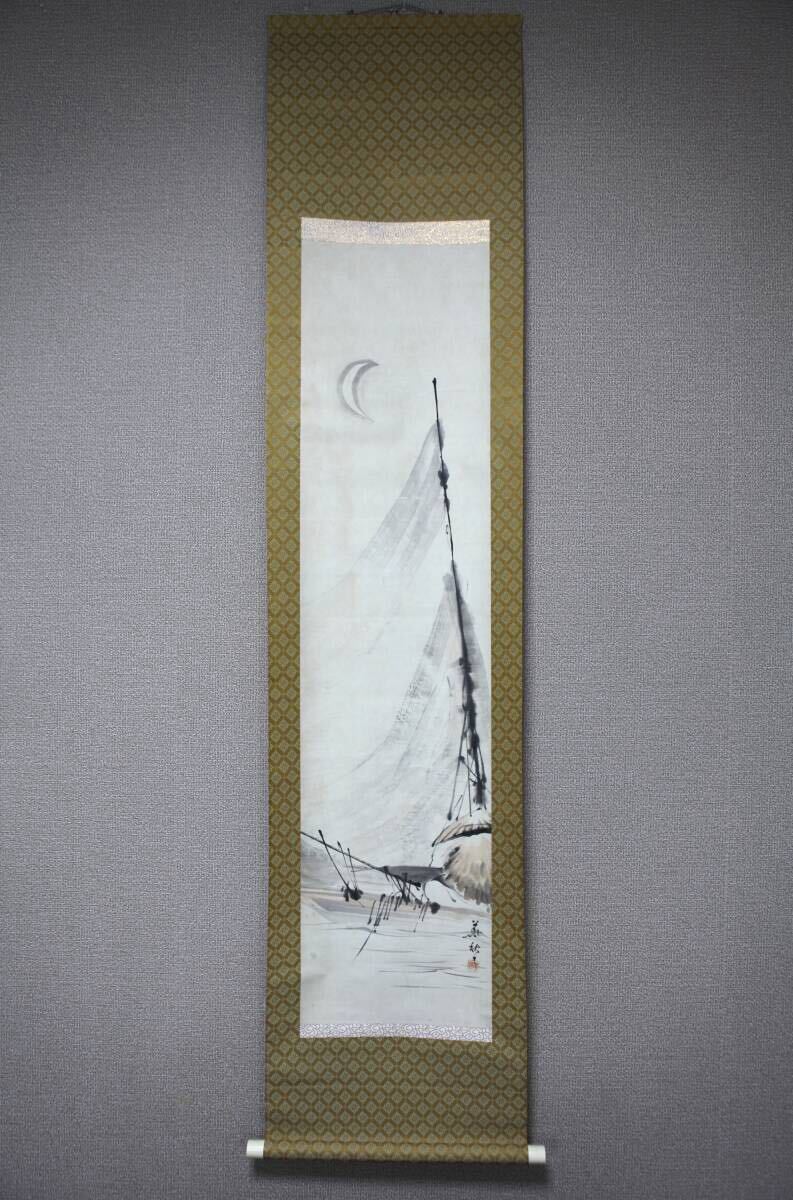 | 【真作】【風車】 菊池華秋 「月下漁翁図」◎肉筆紙本◎山形の人 川合玉堂に師事 文展 帝展 | ||||||||||||||||||||