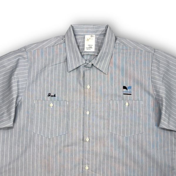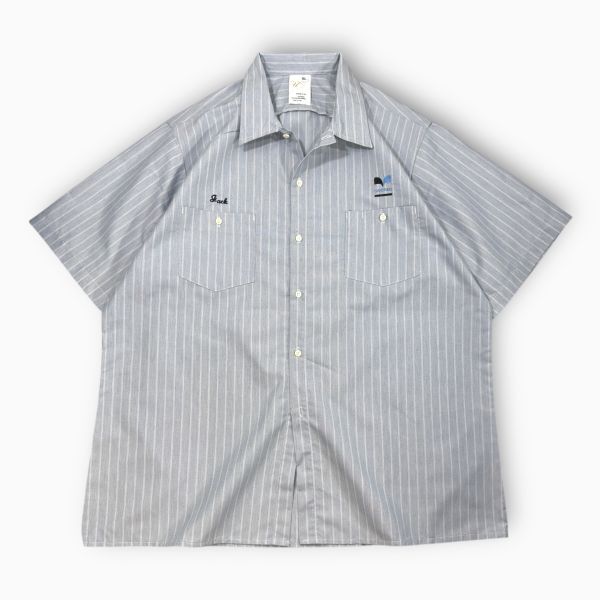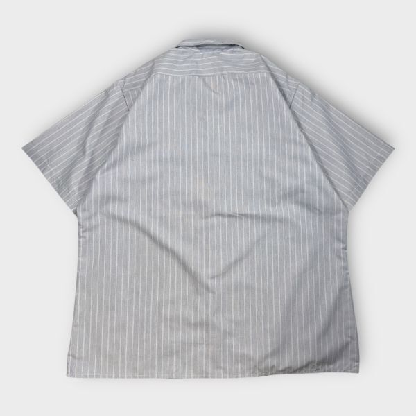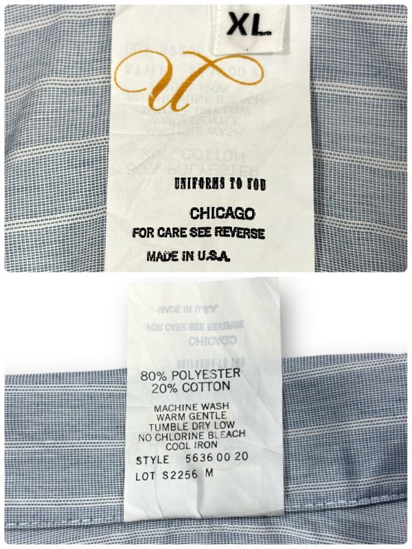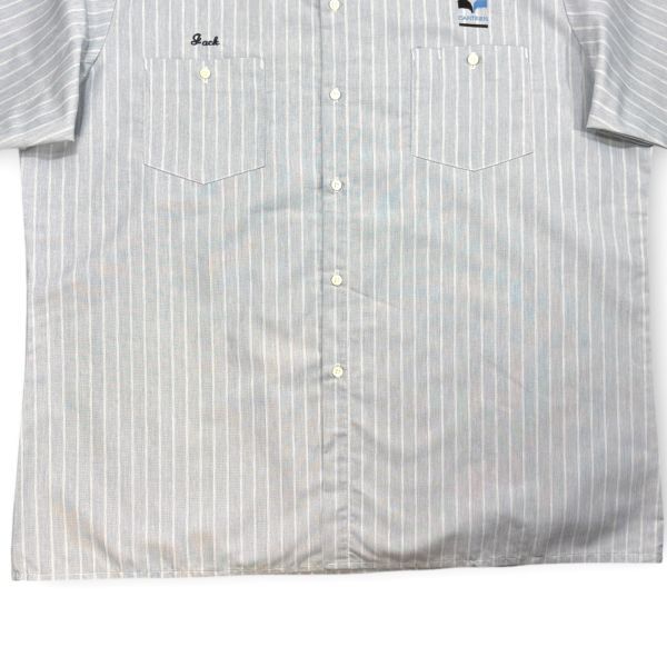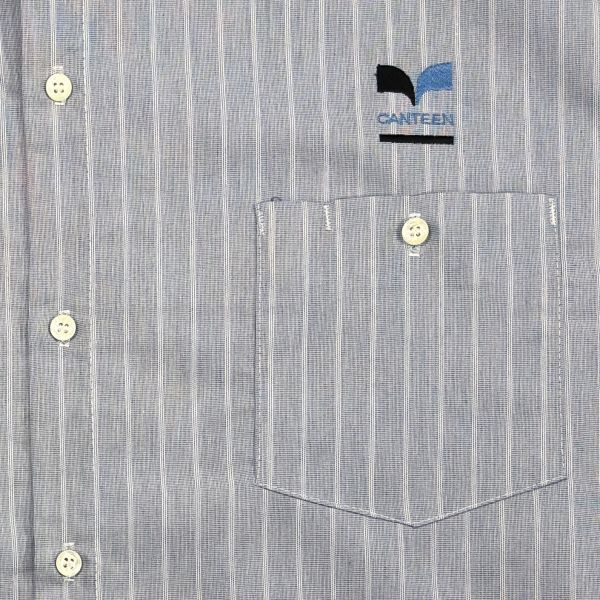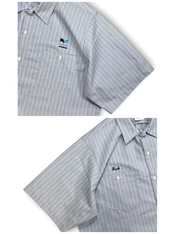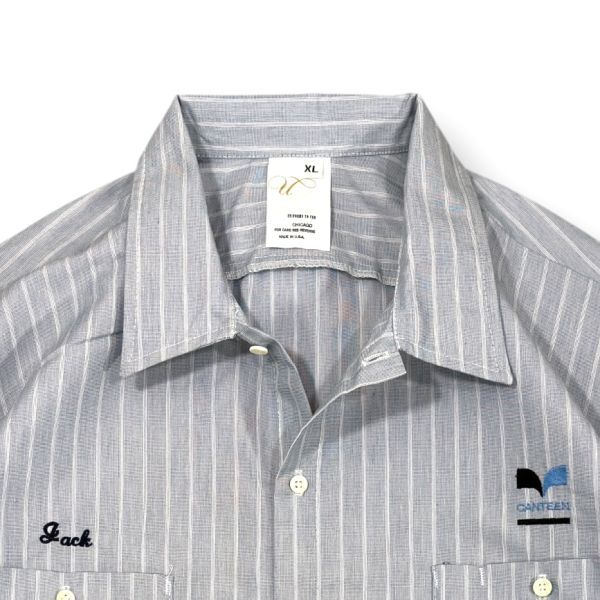 ★USA製★CANTEENロゴ刺繍★ストライプ柄★UNIFORMS TO YOU 半袖ワークシャツ sizeXL スカイブルー系 古着 クリーニング プレス済み 2213
