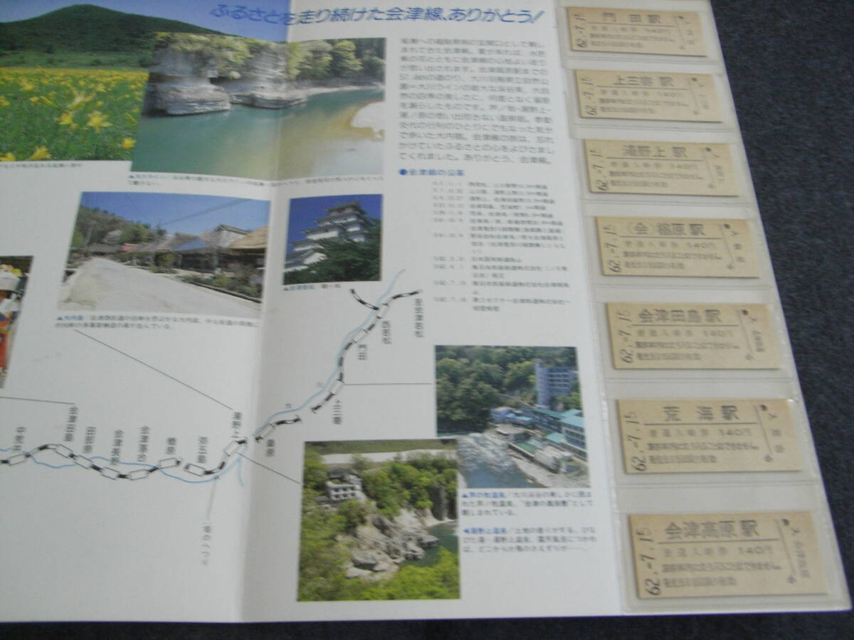 ①さよなら会津線 記念入場券 昭和62年7月15日 ●会津高原駅・荒海駅・会津田島駅・楢原駅・湯野上駅・上三寄駅・門田駅 硬券入場券