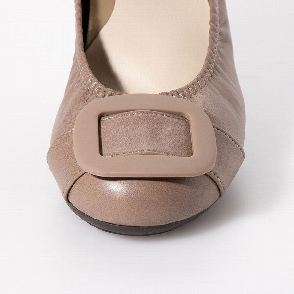 大きめのバックルがデザインポイントの衝撃吸収インソール仕様のパンプスです。