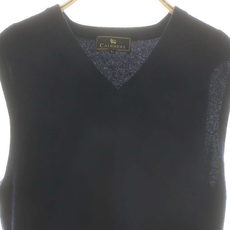 カシミア CASHMERE カシミヤ Vネックベスト ニット プルオーバー L ネイビー /CX ■OS レディース