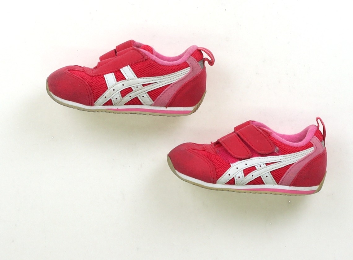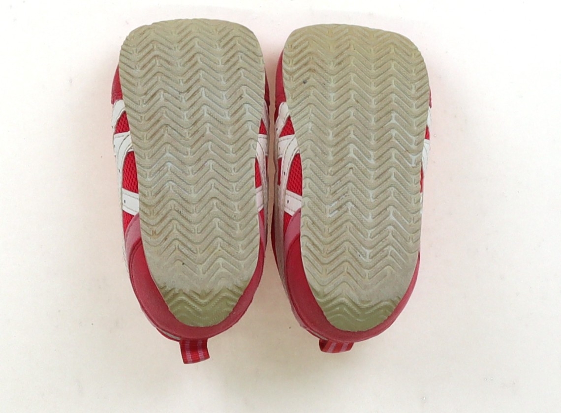 実際のサイズ表記は13.5cm。かかとに底擦れがあります。履き口に細かな毛玉があります。つま先にも黒いすす汚れがありますが、機能性に問題はなさそうです。まだお使い頂けそうです。