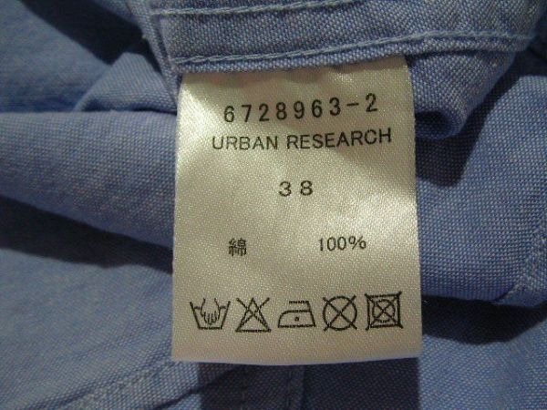 ssy6593 URBAN RESEARCH 長袖 コットンシャツ ライトブルー ■ 無地 ■ シンプル 薄手 胸ポケット サイズ38/M アーバンリサーチ