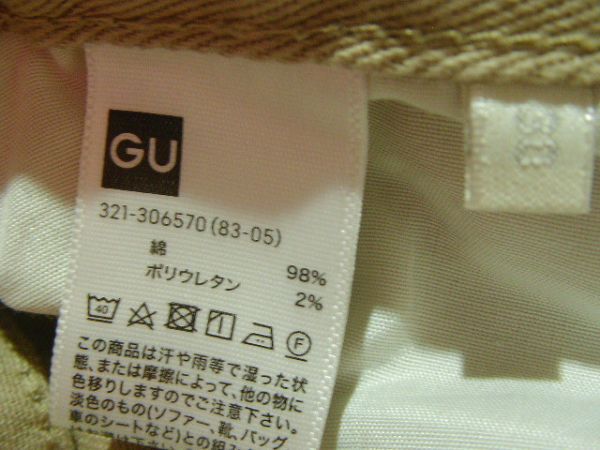 ssy7739 GU ジーユー ジーンズ デニムパンツ ベージュ系 ■ ジップフライ ■ 無地 薄手 ストレッチ コットン W30