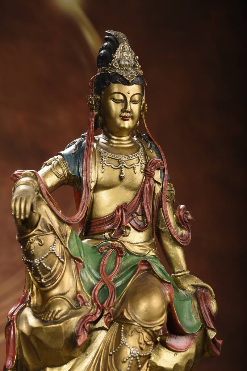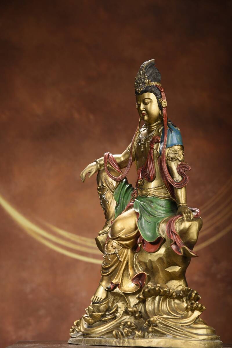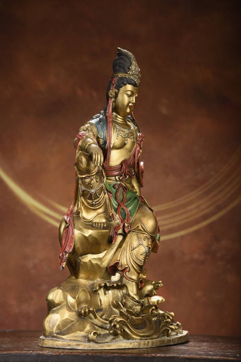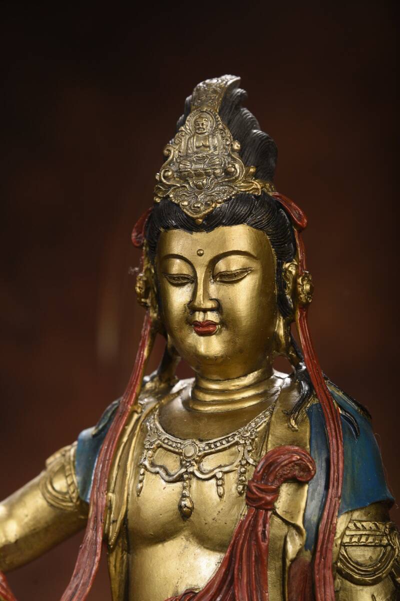 | 【蔵友館蔵品・銅製・金鍍・彩繪・自在觀音像・仏像・宗教・仏教古美術・供養品】・古董品・中国古玩・時代物・希少珍品・中国時代美術 |