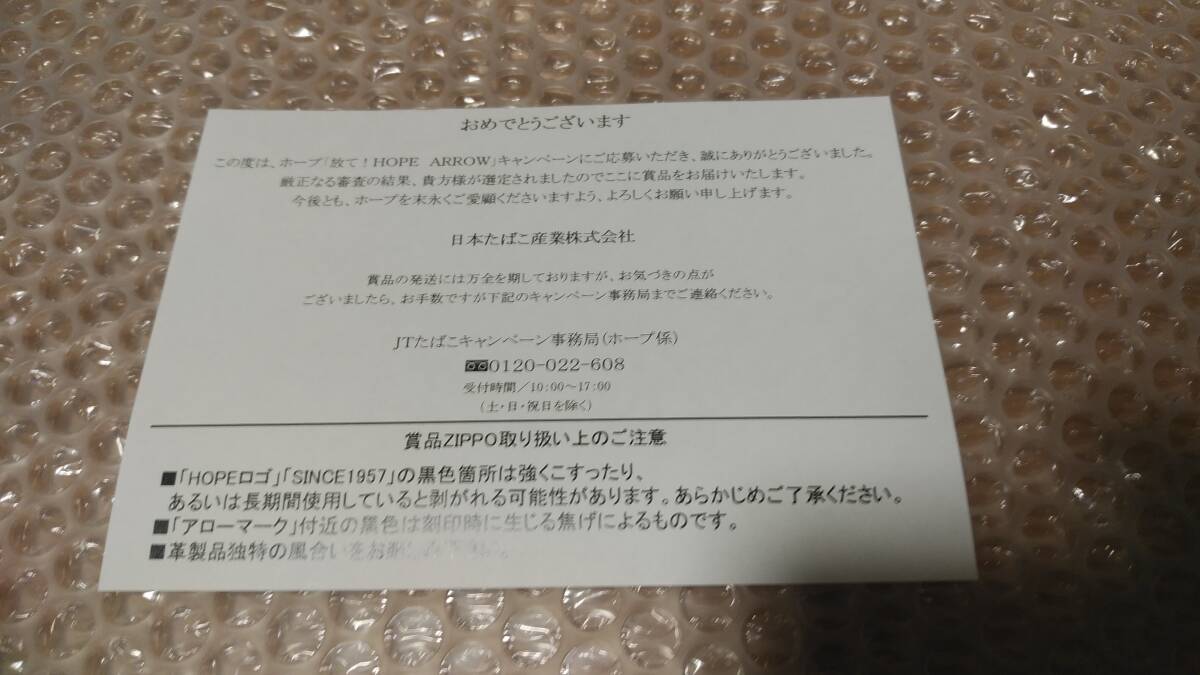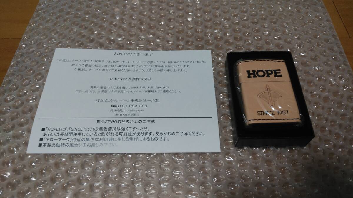 | 未使用 限定200個 HOPE ARROW オリジナルZIPPOをGETせよ 牛革巻き 2009年 web限定 | |