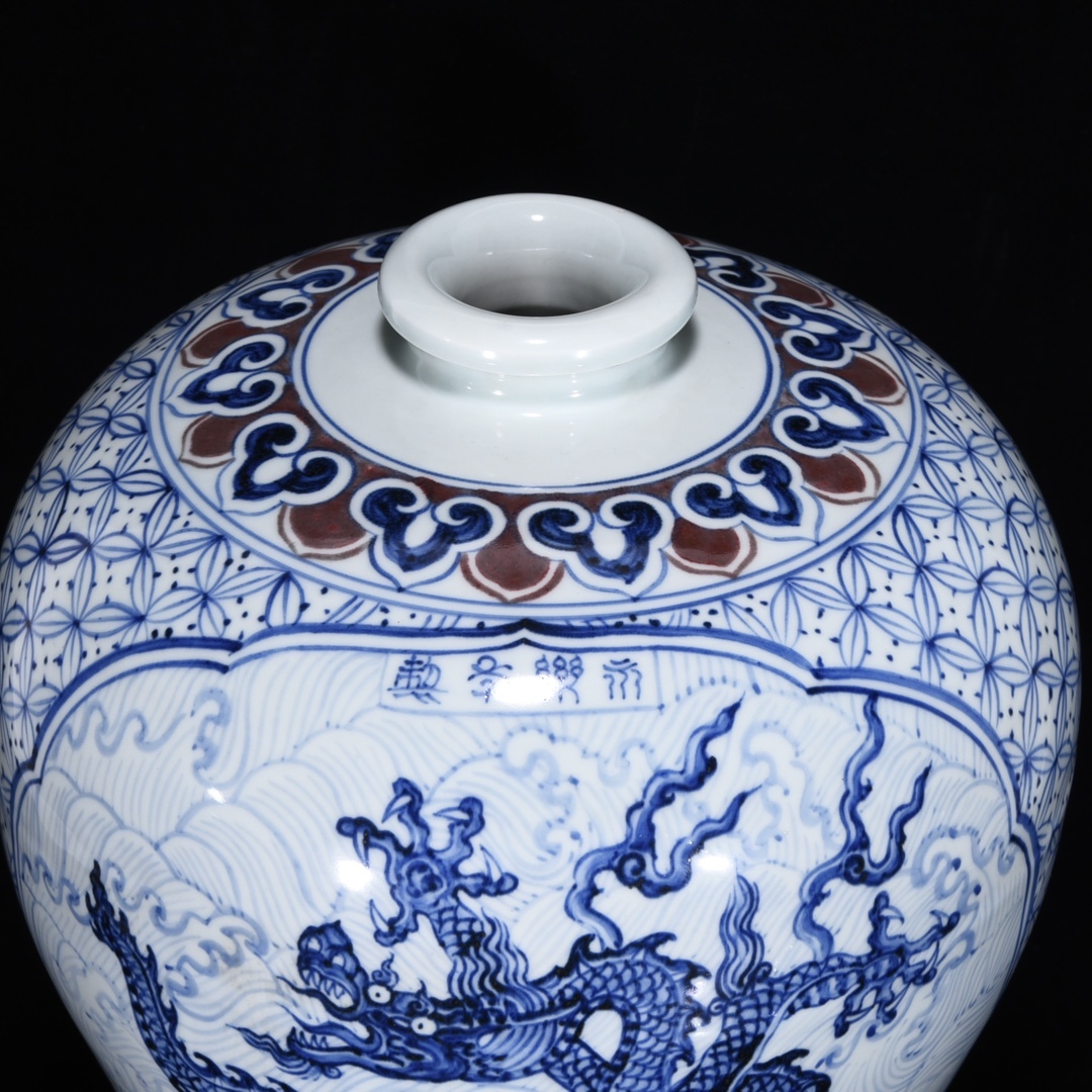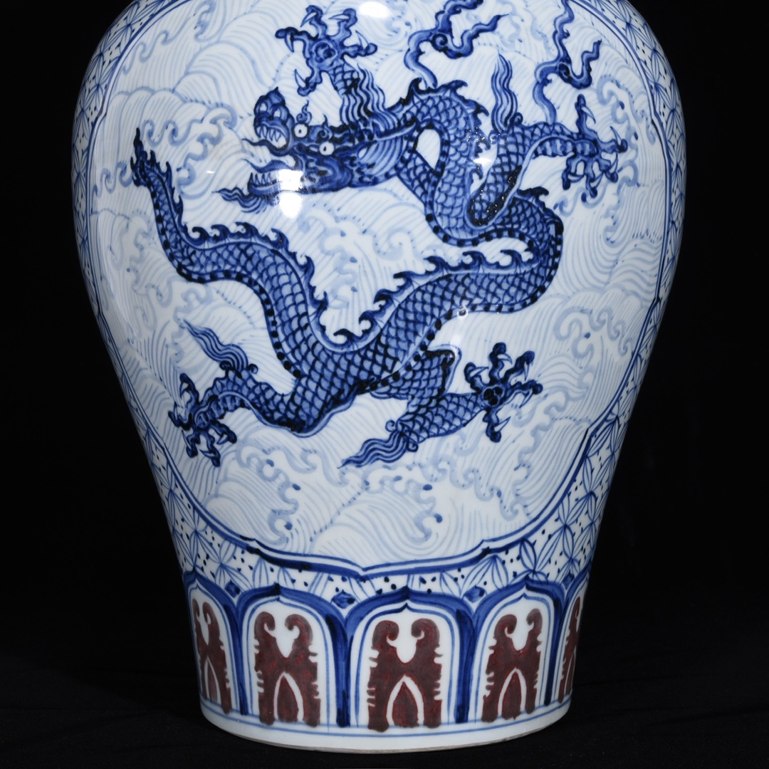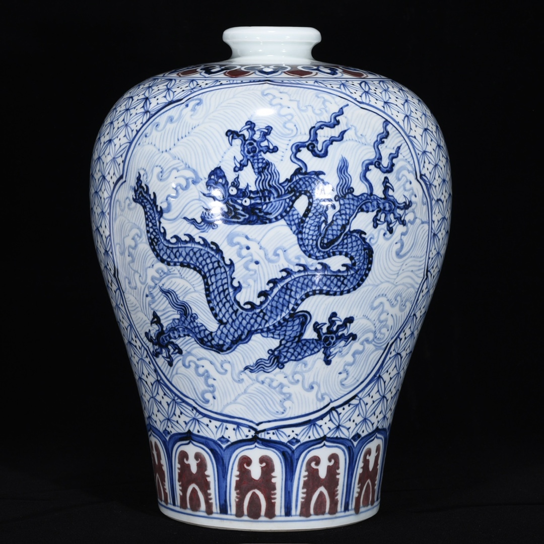 磁器 明代 永樂年制 青花 リス釉里紅龍紋梅瓶 文房具 唐磁 古陶磁器 陶芸 中国古美術 古賞物 古置物 唐物 旧蔵 S76