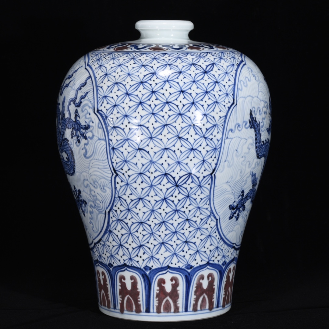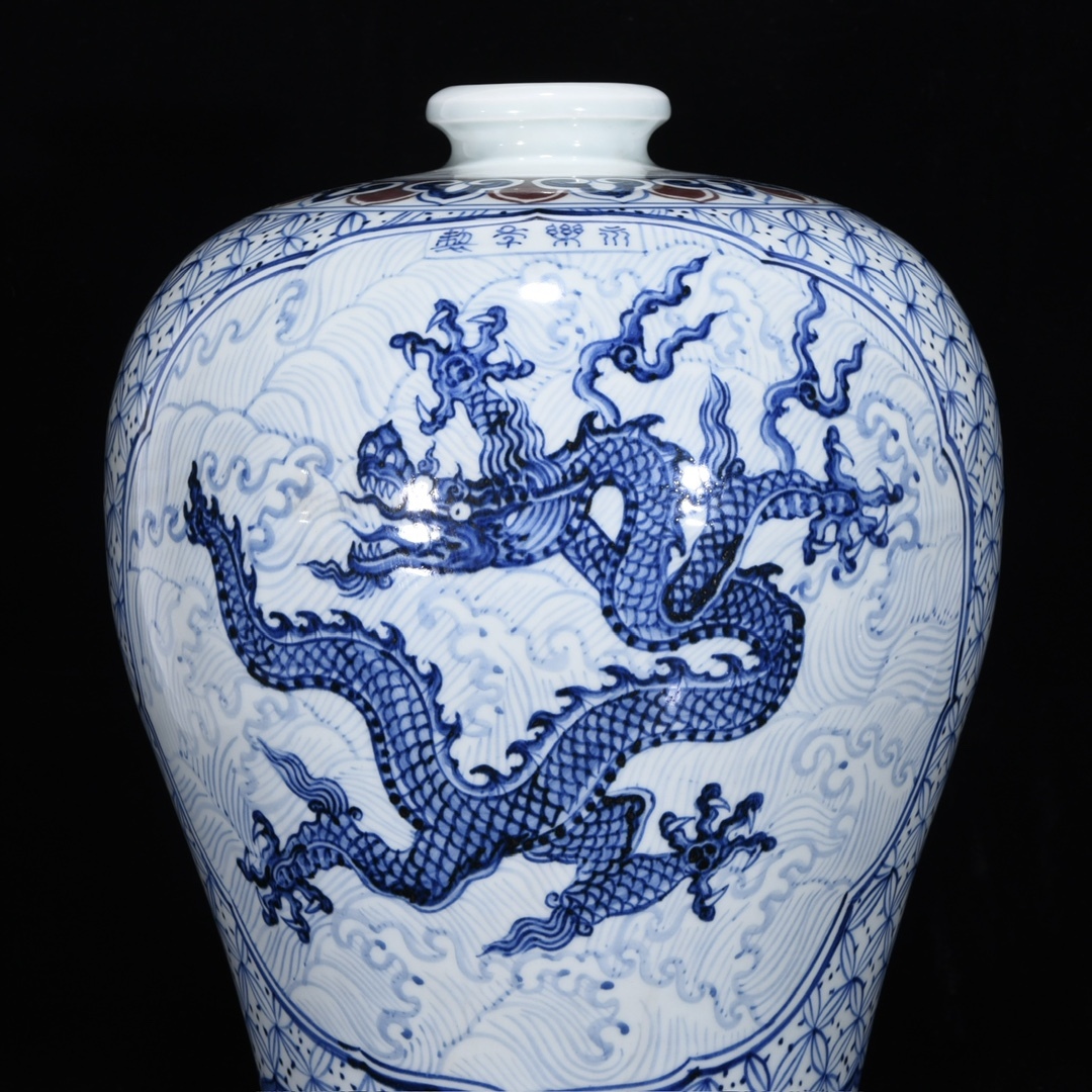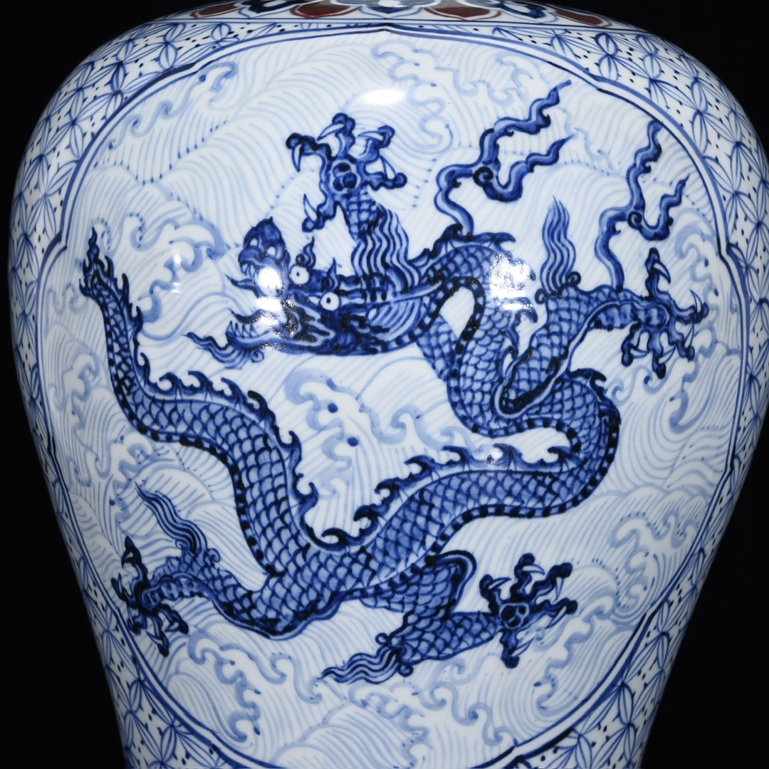 磁器 明代 永樂年制 青花 リス釉里紅龍紋梅瓶 文房具 唐磁 古陶磁器 陶芸 中国古美術 古賞物 古置物 唐物 旧蔵 S76