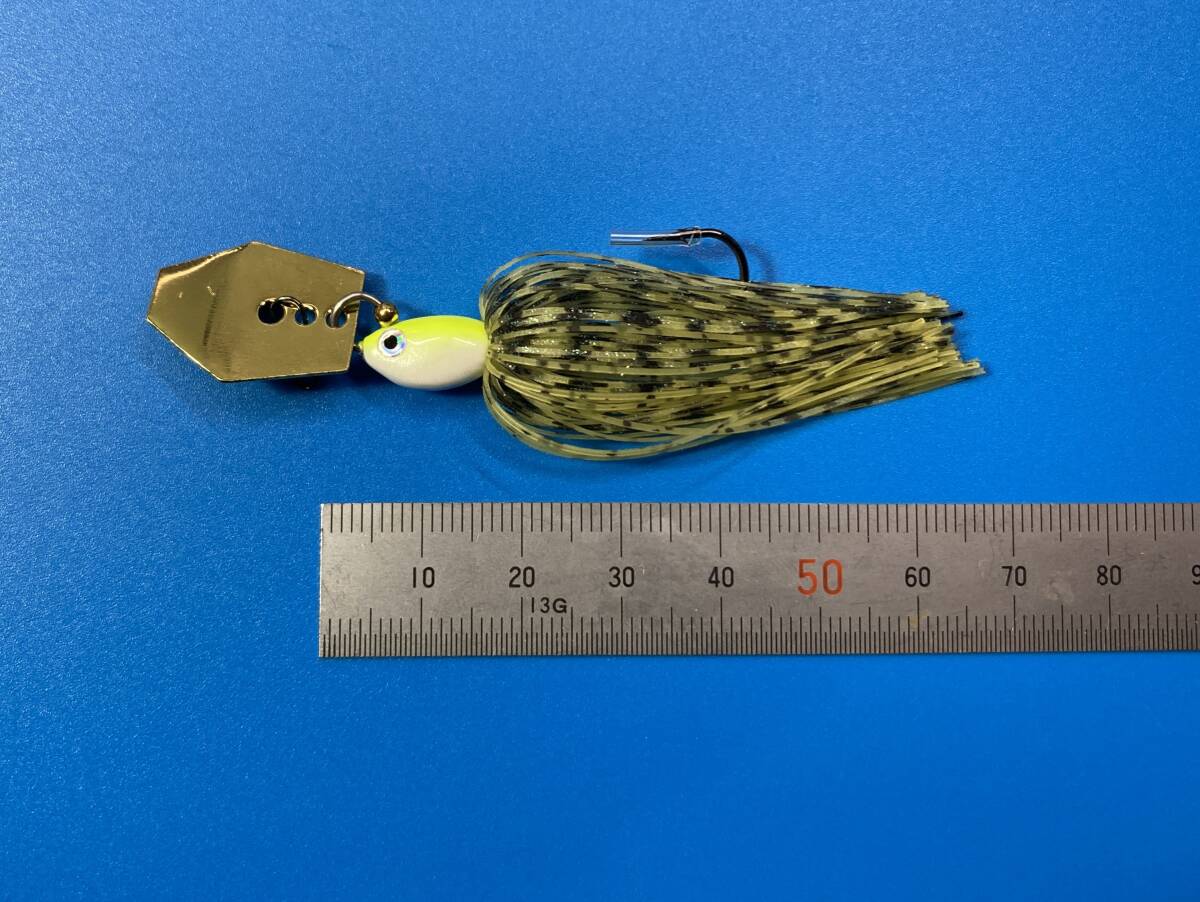 当方で製造するチャターベイトはボディ全長45mm弱・1/8ozというコンパクトなサイズで