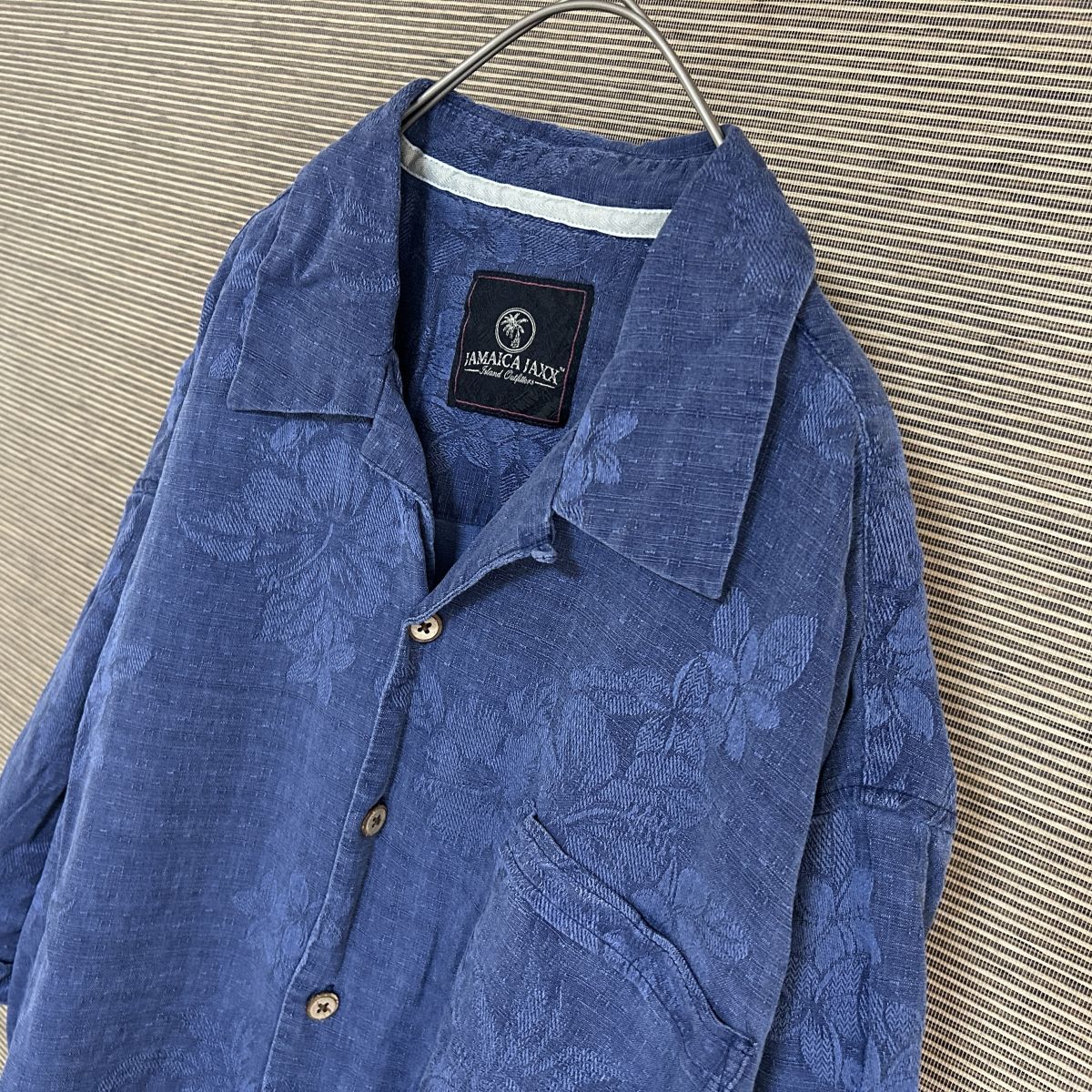【アロハシャツ】総柄オープンカラー ボタニカル ネイビー 花柄 @6 | |