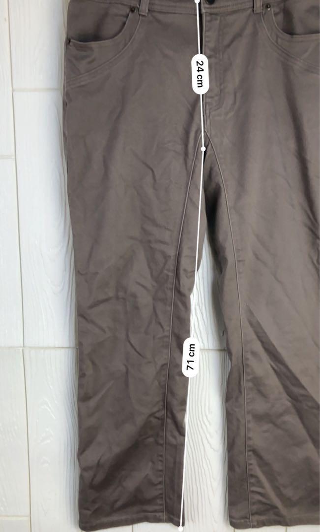 シンプルなブラウンのパンツ、ウエスト76cm、股下71cmで快適なフィット感を提供します。