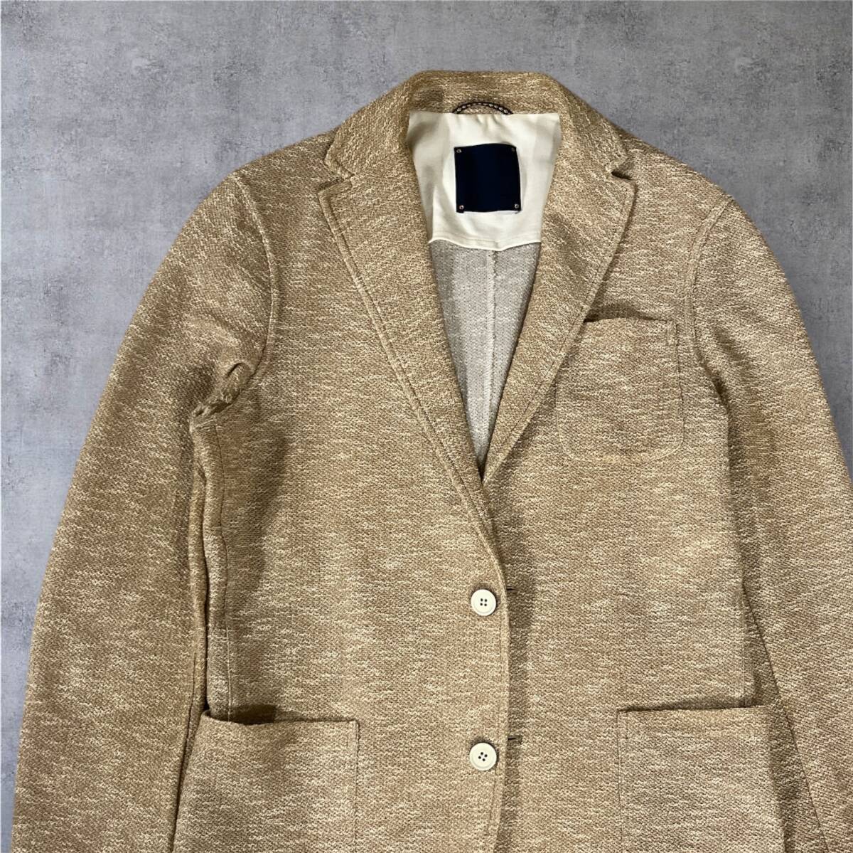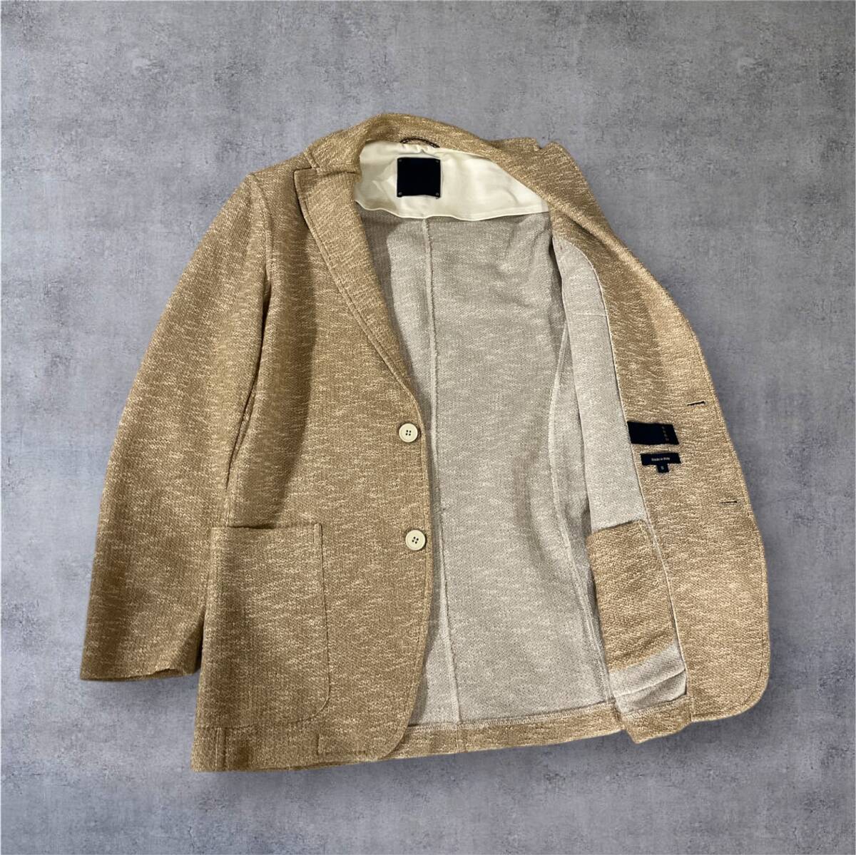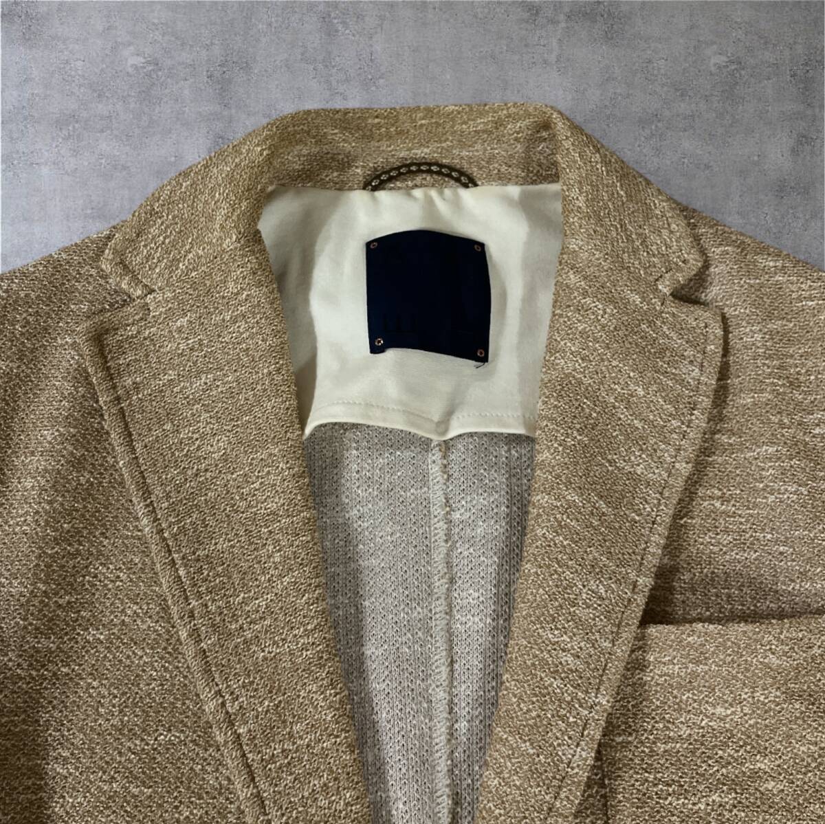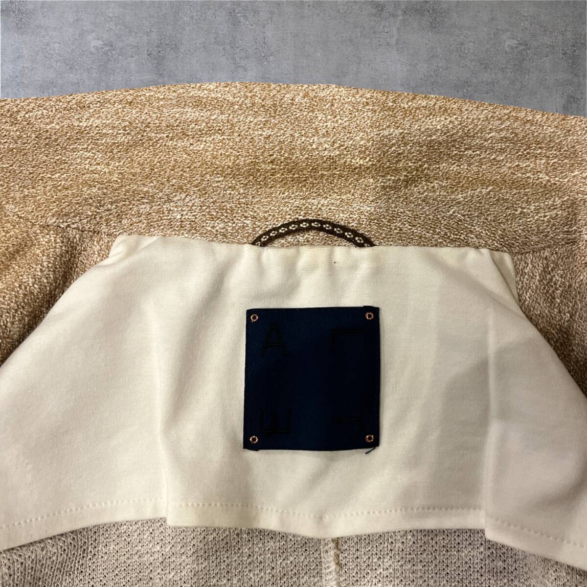 タオル素材に似た風合いの生地、絶妙なベージュ・ブラウンの色合いが魅力的な一着。