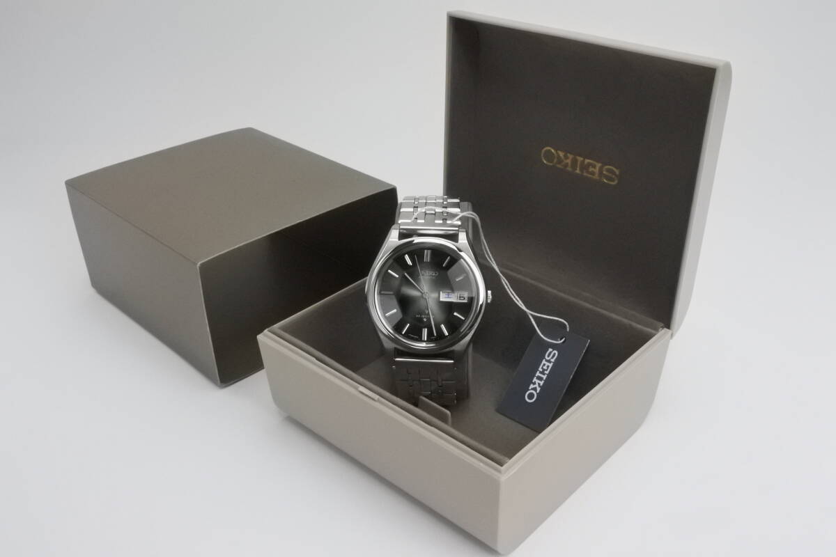 ロードマチックは1968年に発売され、1970年代にビジネスマン向けに非常にヒットしました。当時の初任給の半額ほど、今でいうと10数万円で販売されていたにも関わらず高級機に劣らない機能性、実用性を兼ね備えていたというのがその理由です。ロードマチックはGSKSには殆ど無いカラーダイアルやカットガラスのタイプなど、バリエーションが豊富にあるのも特徴です。この時計の文字盤はグリーンカラーのダイアルで、光源から徐々に色が出てくるような変わったグラデーション模様になっているのが最大の特徴です。