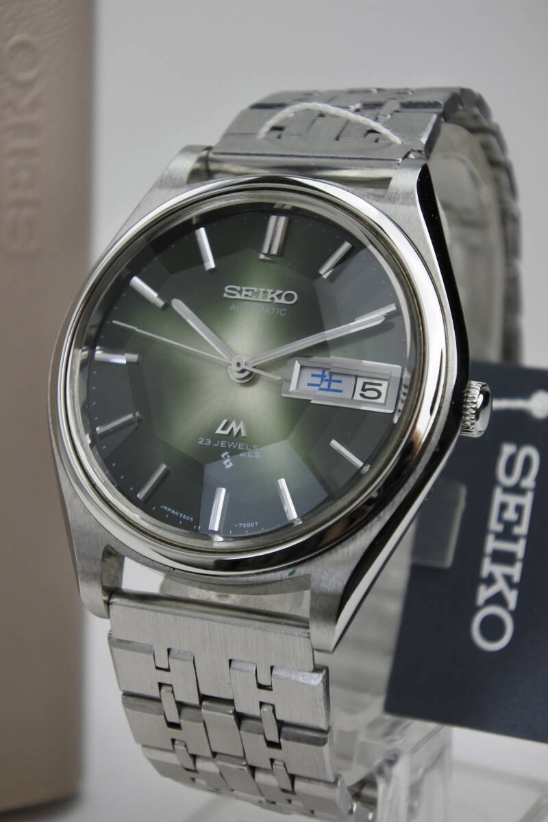 ☆☆☆ 56系 1973年製 SEIKO LORD MATIC 5606-7071 23石  9面カットガラス グリーン ダイアル 自動巻紳士腕時計 稀少箱付 国産名機