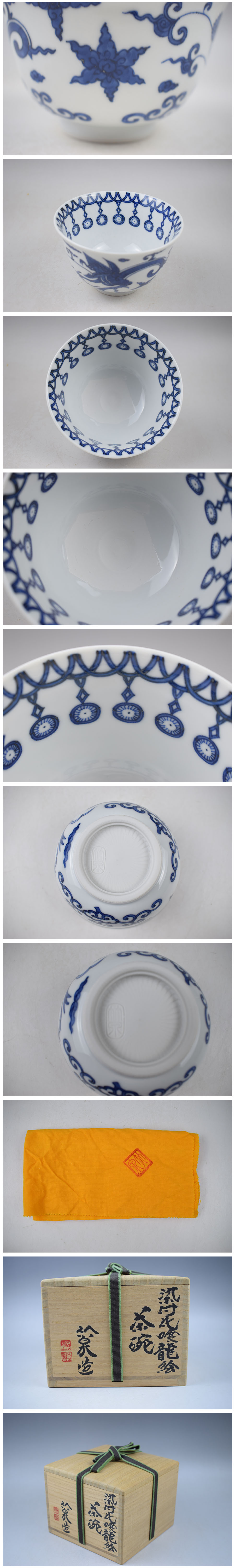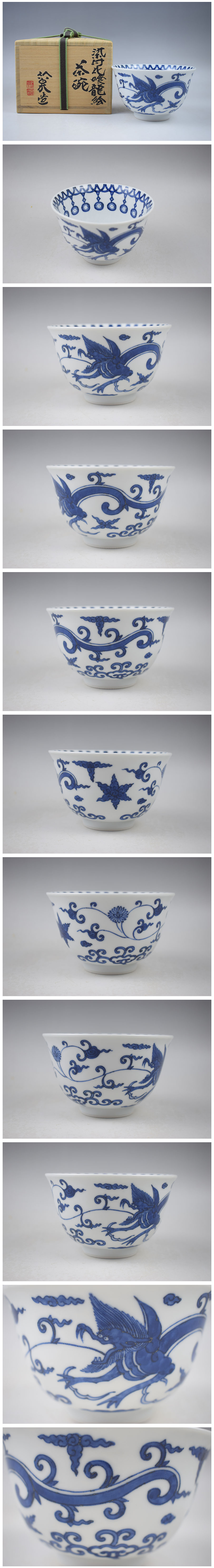 【五代三浦竹泉 染付花喰龍絵茶碗 共箱 真作保証 】