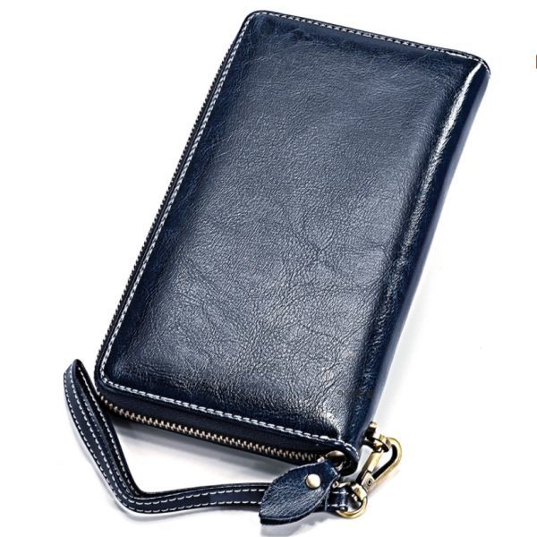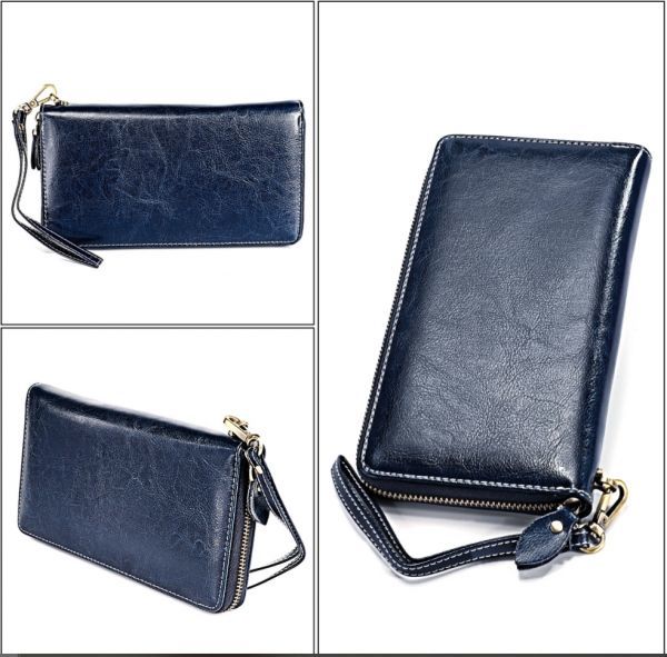 長財布 本革 高級牛革 ラウンドファスナー型 ヴィンテージ加工 61 紺色 |