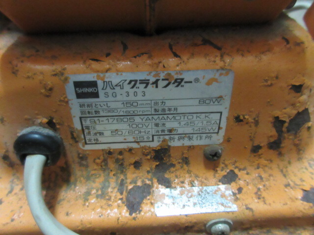 BHINKO ハイグラインダーSG-303 100V 50-60Hz 出力80W 研削といし150mm 動作確認済