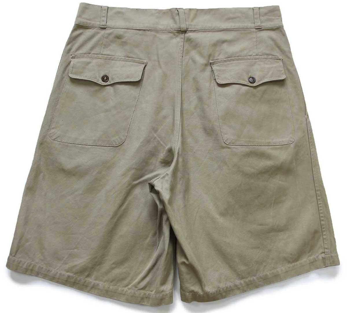 ★ビンテージ イタリア軍 ツータック コットンツイル ショートパンツ カーキ w35★ショーツ ハーフ ユーロ ミリタリー トラウザーズ