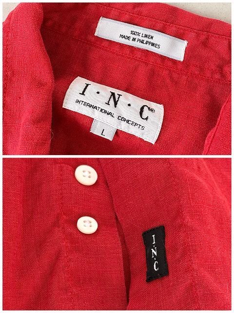 I.N.C INTERNATIONAL CONCEPTS アイ.エヌ.シー インターナショナル コンセプト リネン100% 無地 長袖シャツ 赤 麻 メンズ (L) レッド ●r-657