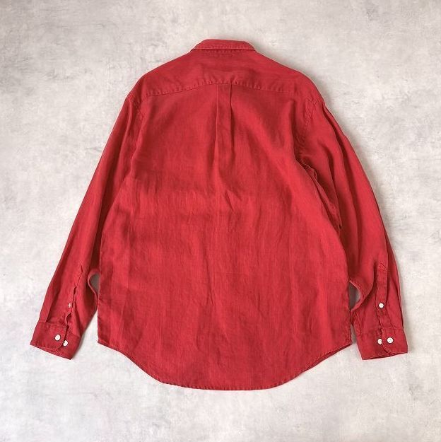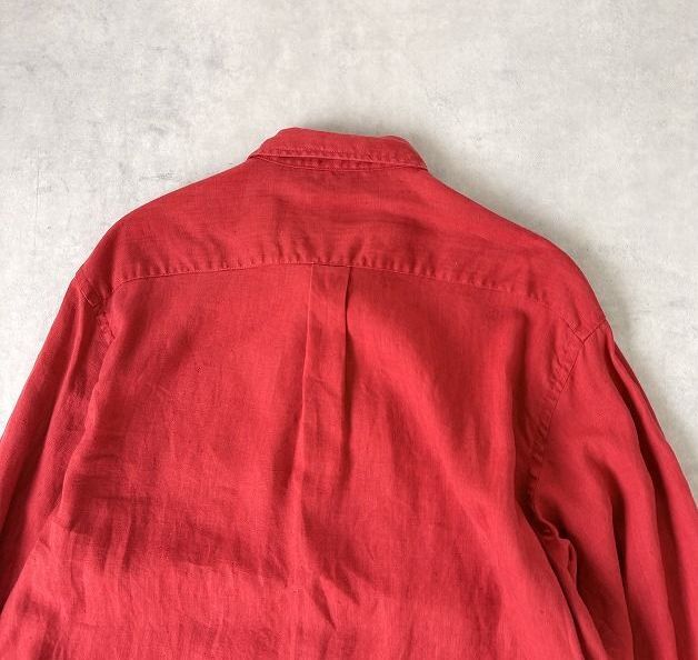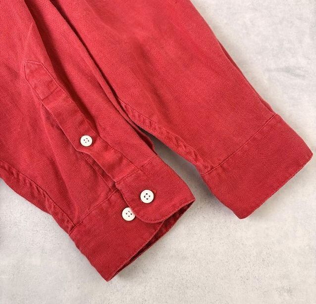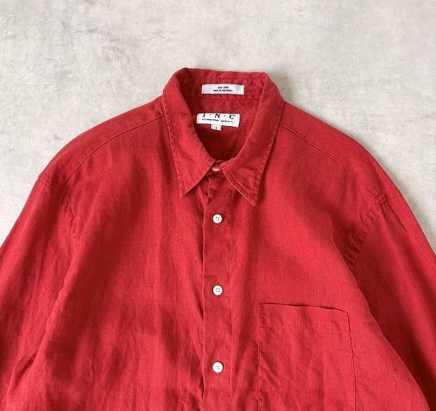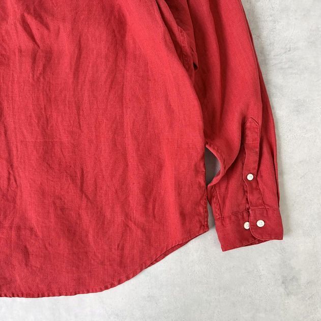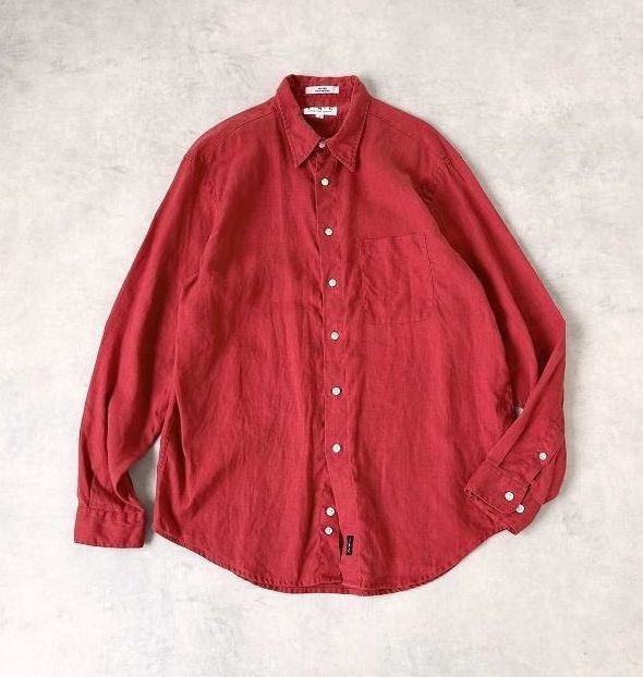 I.N.C INTERNATIONAL CONCEPTS アイ.エヌ.シー インターナショナル コンセプト リネン100% 無地 長袖シャツ 麻 メンズ (L) レッド ●r-657