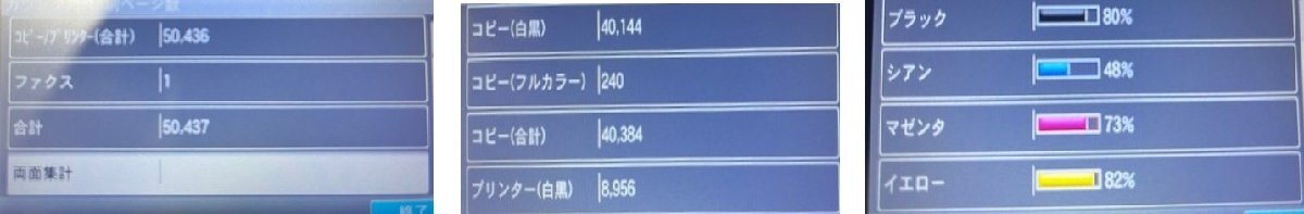 トータルカウンター | 50,437枚 ※落札後発送前に動作確認を再度行いますので、カウンター・トナー残量の数値が多少変動します。ご了承下さい。 | ||||||