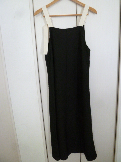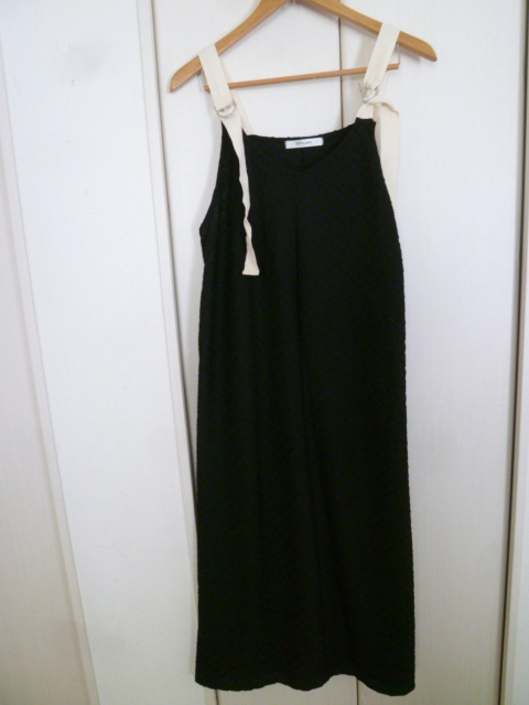 TYTY CLAPPY◇黒ぽこぽこ模様後ろスリット入りジャンパーワンピースL/ブラックロングポコポコ◇OP723