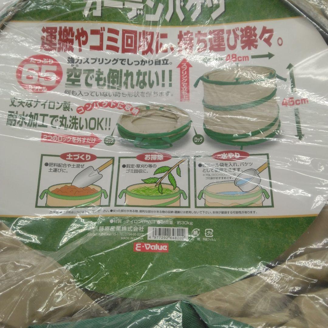 イーバリュー(E-Value)E-Value ガーデンバケツ 中 65L 撥水加工・スプリング内蔵 EGB-1N カーキ 本体のみとなります。 あくまで未使用品ですがご理解ある方のみお願いいたします。