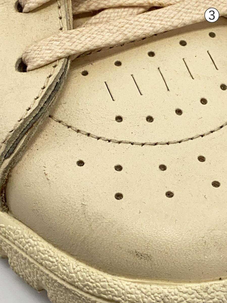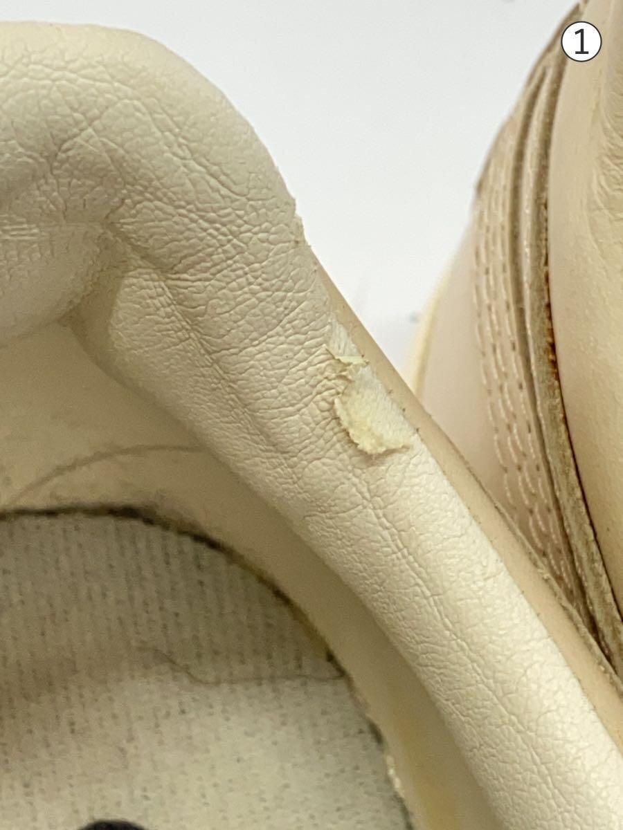 (1)擦れあり (2)擦れあり (3)擦れあり 右足の履き口に剥がれが見受けられます。また、右足内側、トゥー周りを中心にスレや汚れが見受けられますが、まだまだご使用頂けるお品物でございます。 |