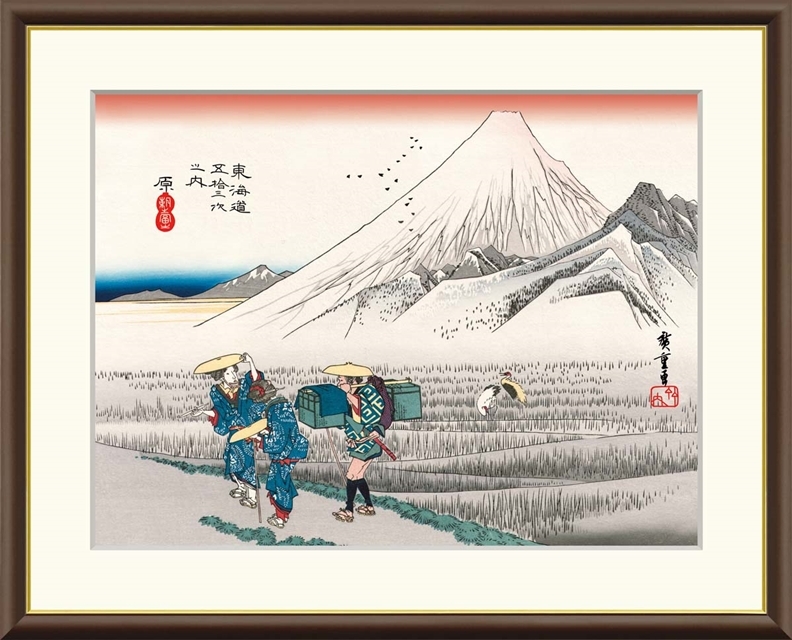 高精細デジタル額装版画 浮世絵 東海道五十三次 歌川広重 「 原 朝之富士 」 サイズ F8号