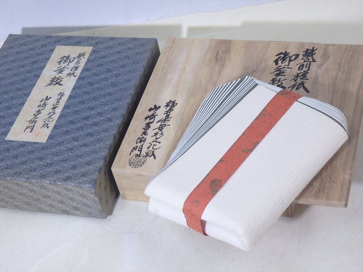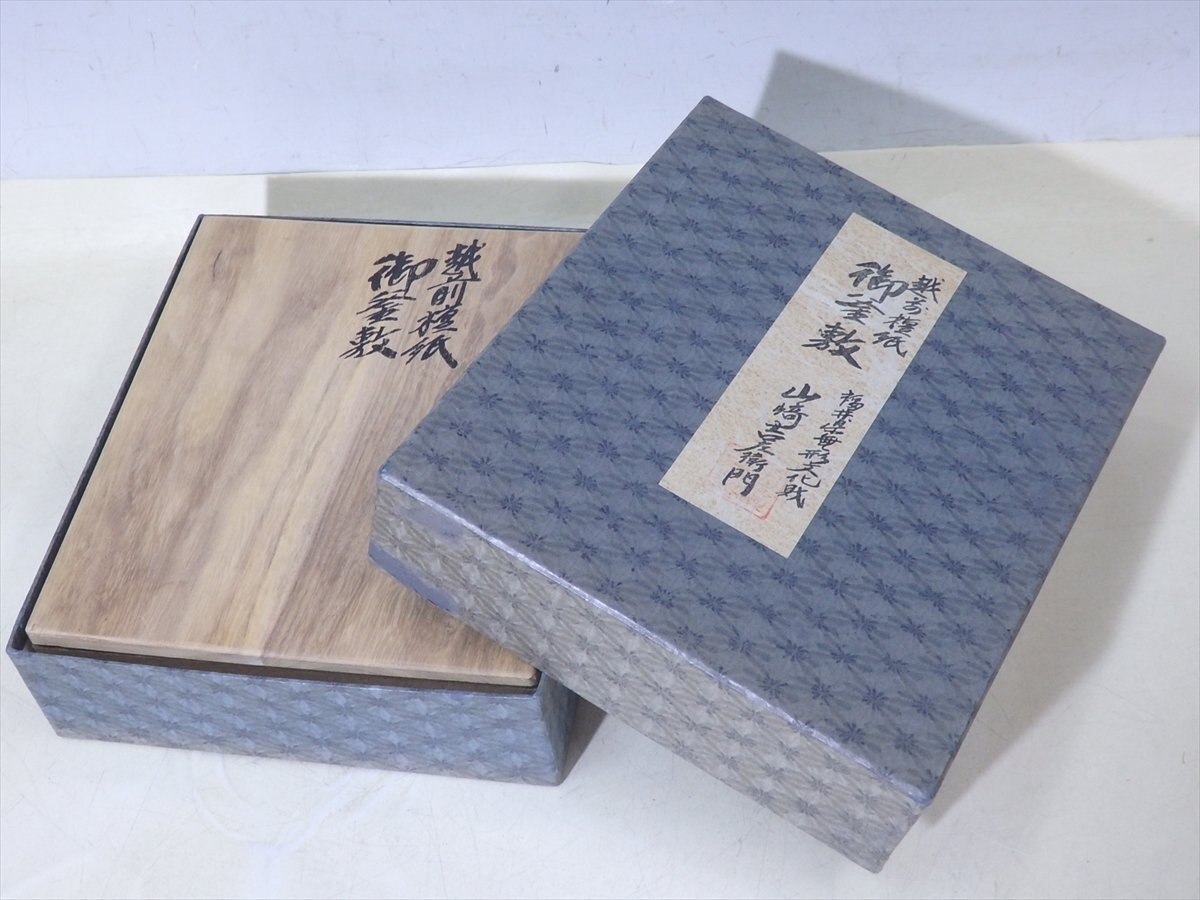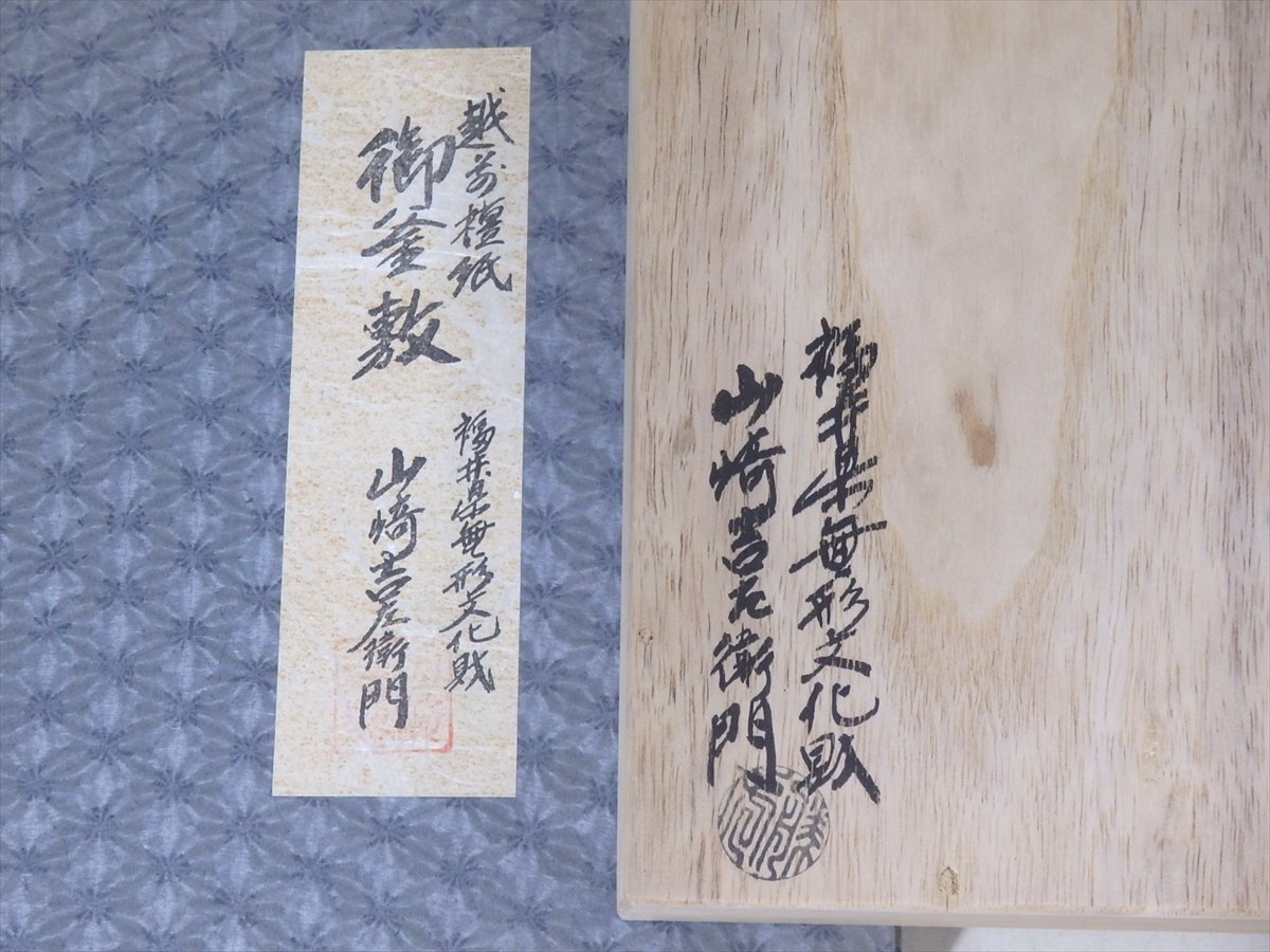 ★福井県無形文化財 山崎吉左衛門【越前檀紙 御釜敷 共箱】サイズ約18×16.5×厚4cm 茶道具 紙釜敷 茶器