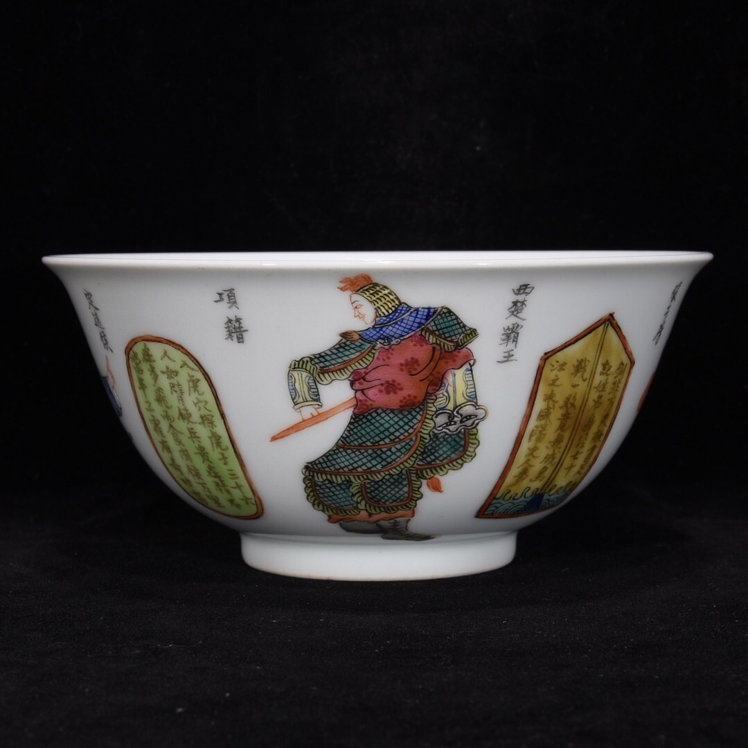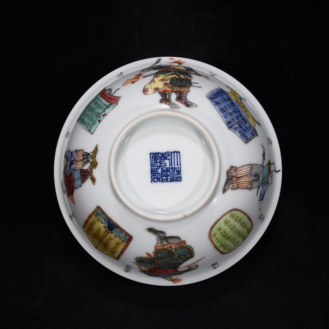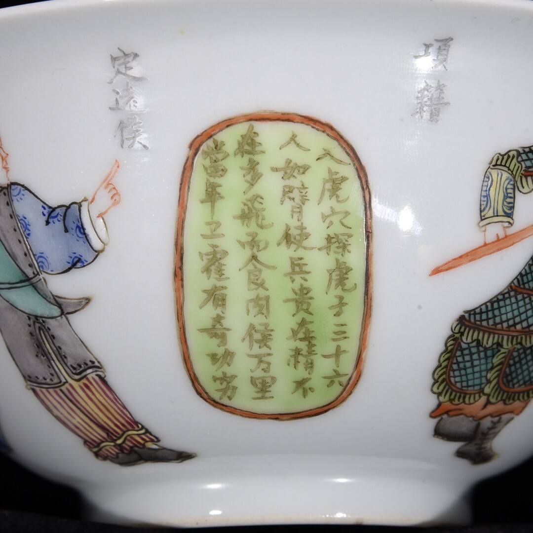 「清 乾隆年製 陶磁器 粉彩人物故事紋 題詩碗一対」染付 置物 擺件 古賞物 中国古美術 旧蔵出