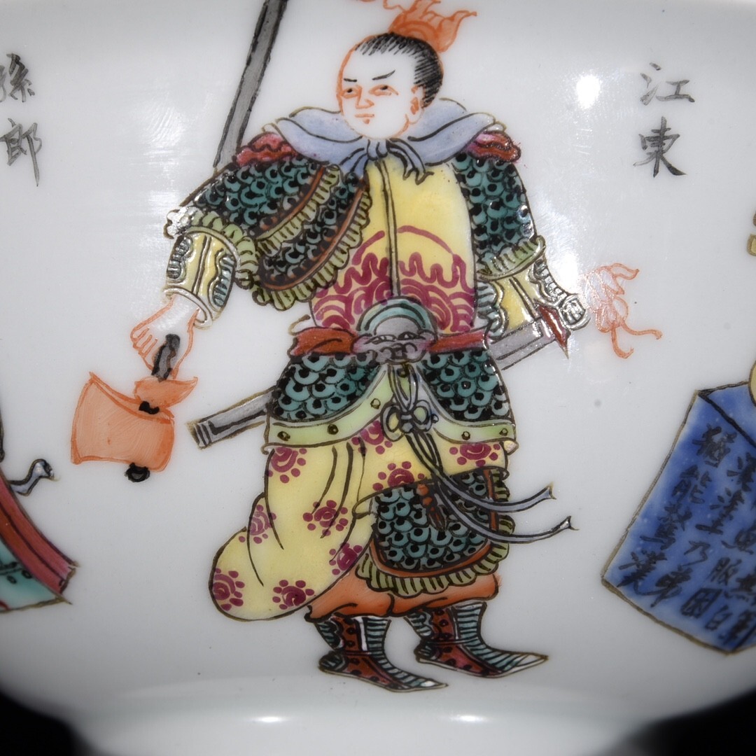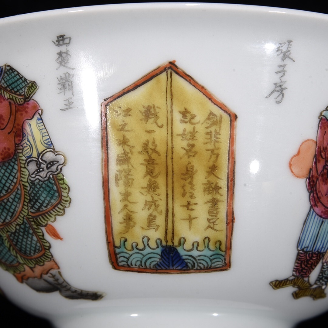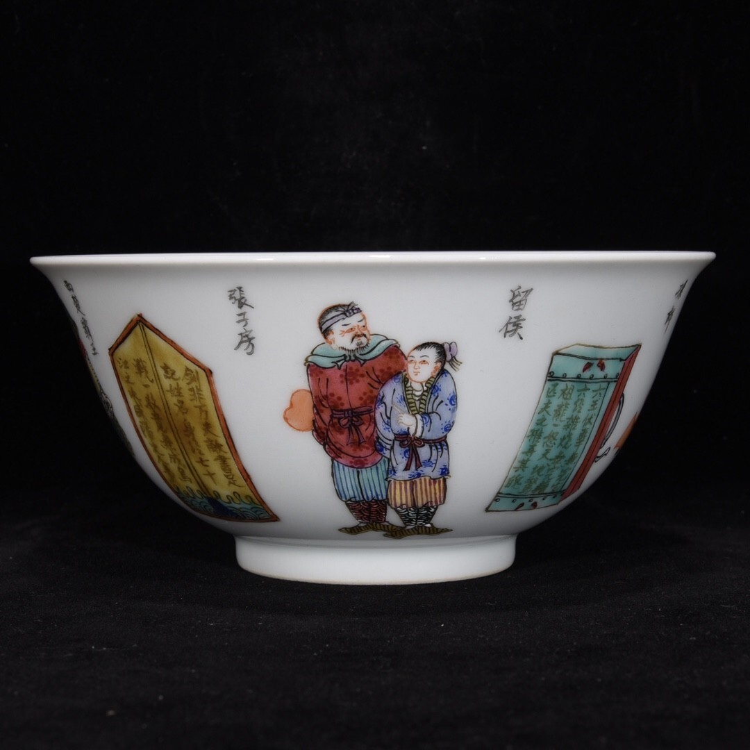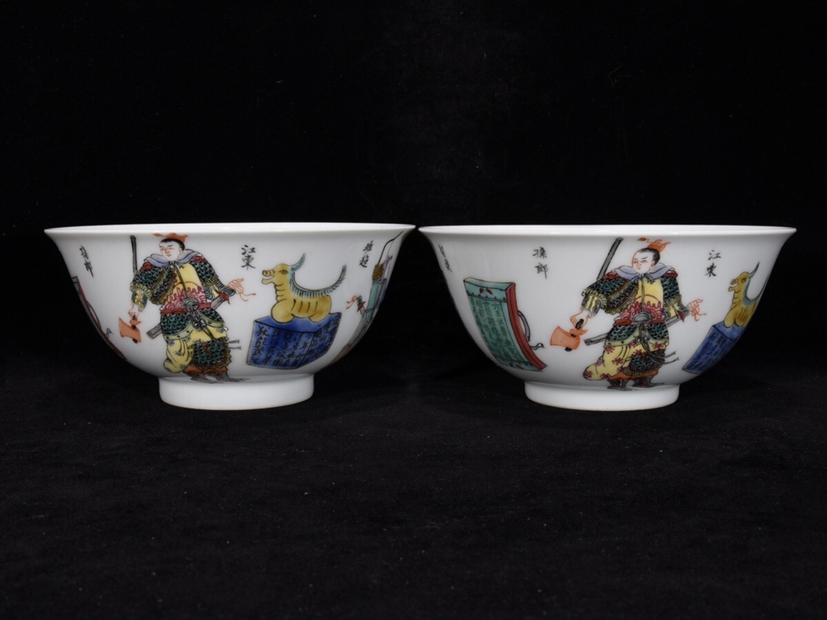 「清 乾隆年製 陶磁器 粉彩人物故事紋 題詩碗一対」染付 置物 擺件 古賞物 中国古美術 旧蔵出