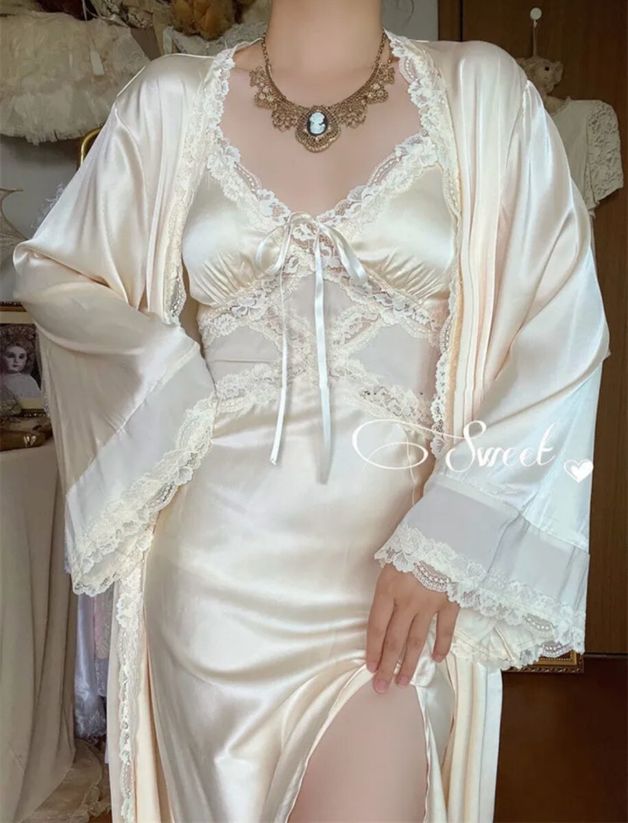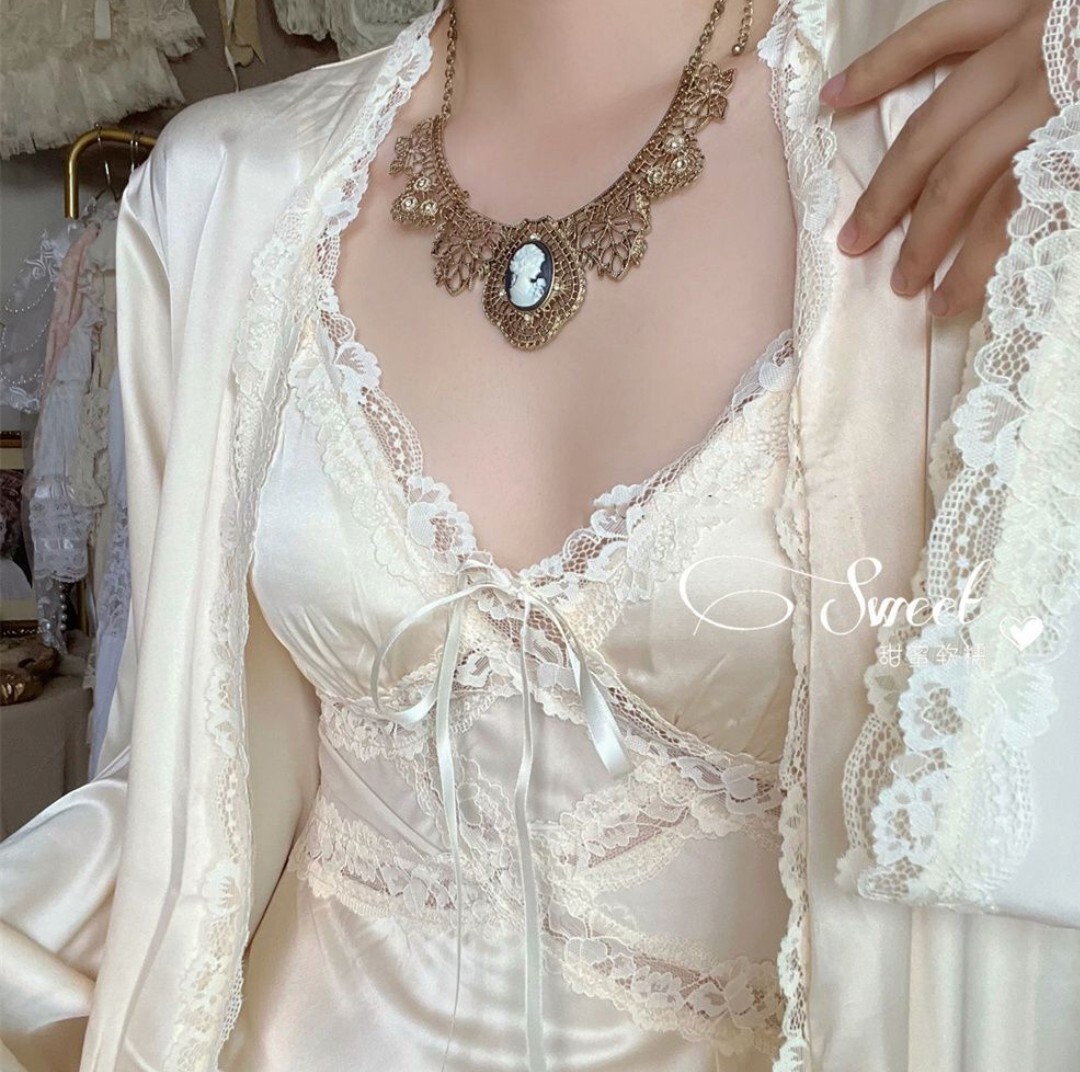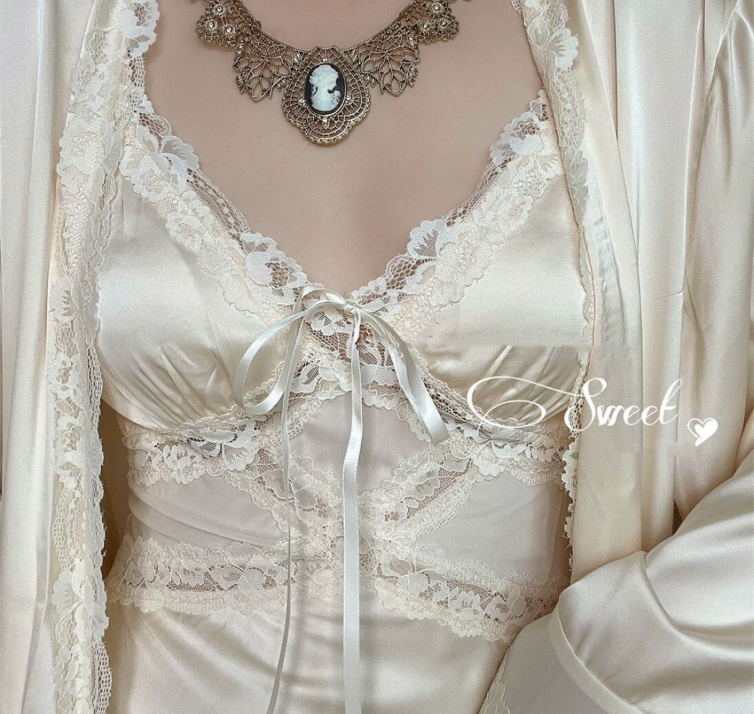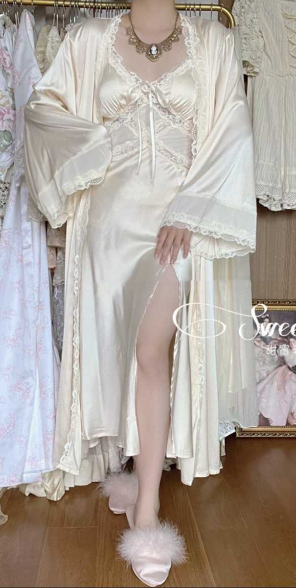 ■,優雅で豪華、愛らしいツルツルテロテロのエレガントなナイトガウン,大人の柔らかい肌触り 大きいサイズのネグリジェ