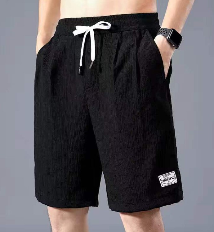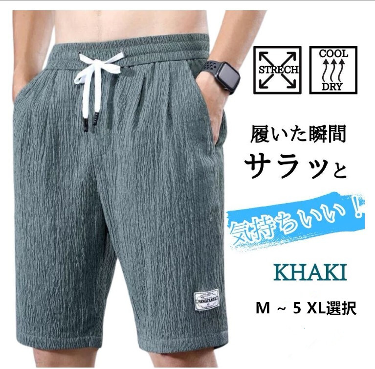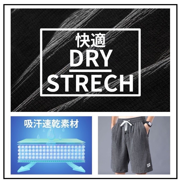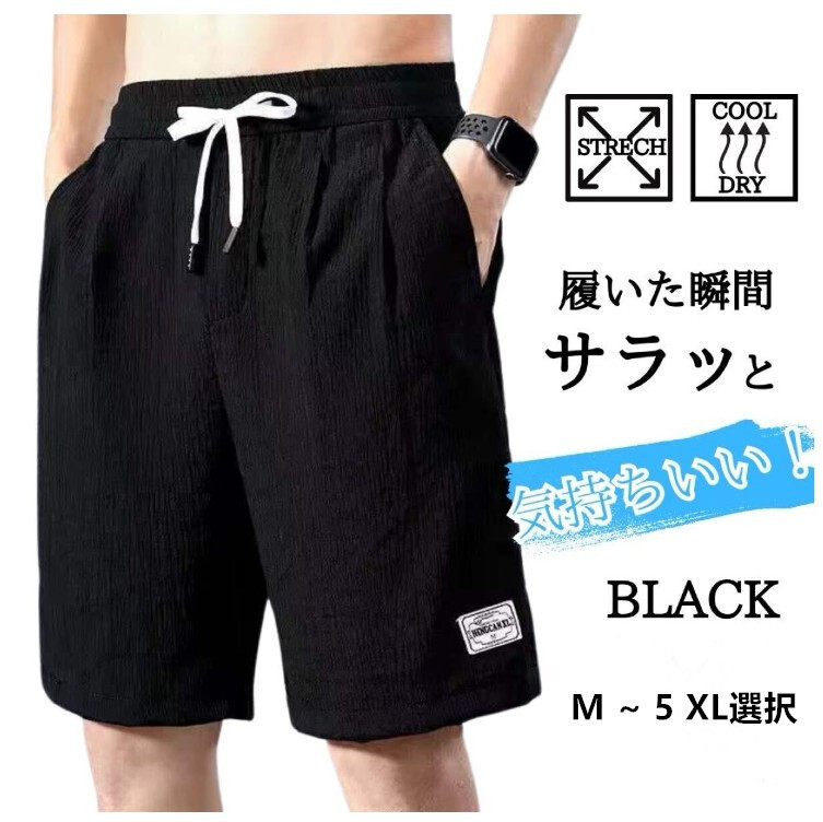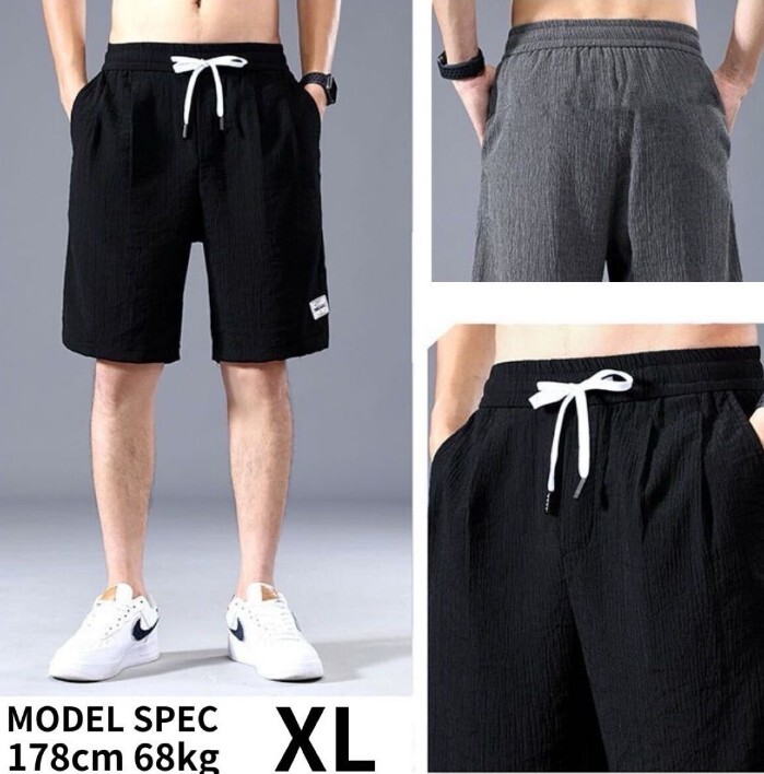 メンズ サルエルパンツ 夏 ハーフパンツ 綿麻 短パン 半ズボン ジョガーパンツ スウェットパンツ ビーチショーツ クロップドパンツ 黒 L
