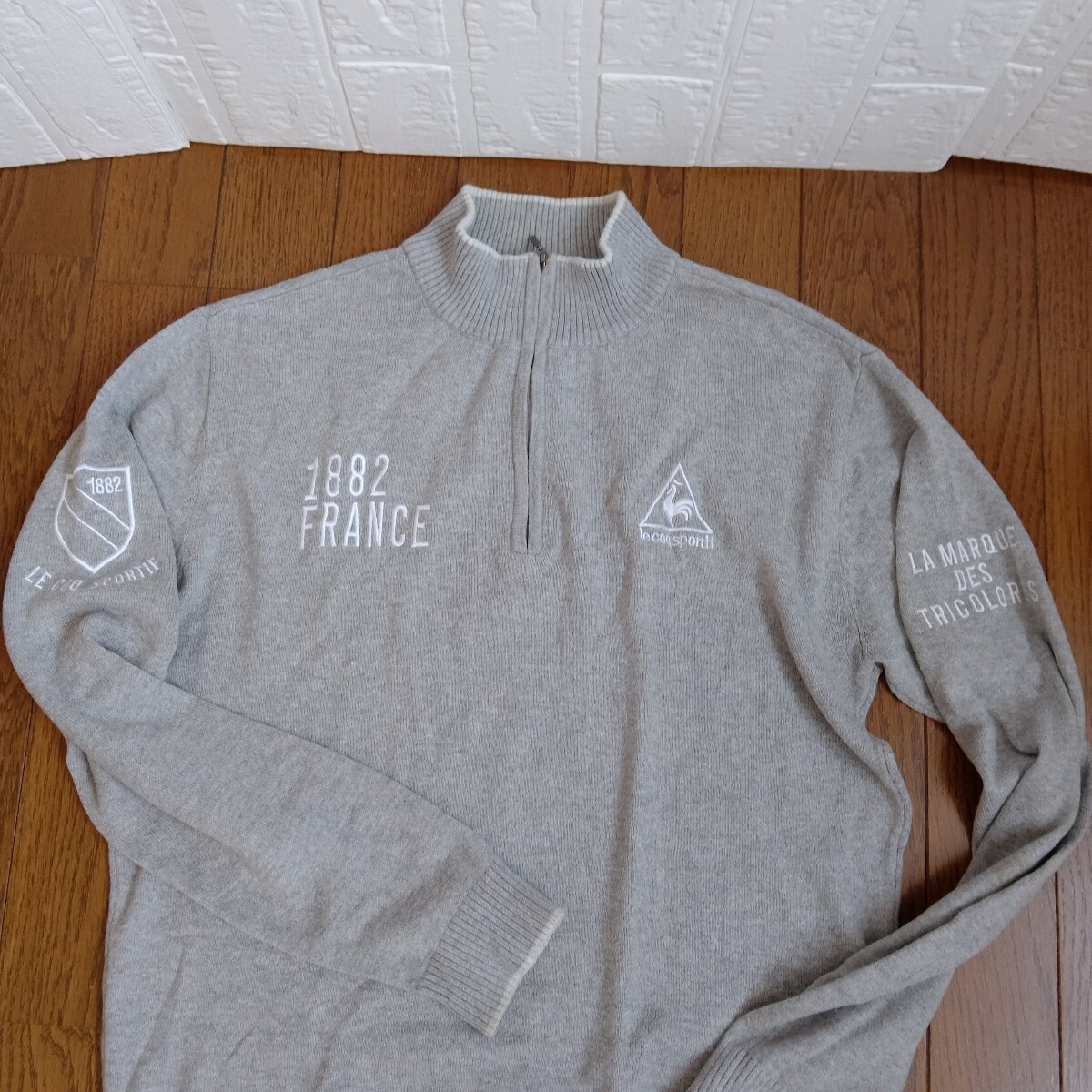 ※グレーのジップアップセーター、1882 FRANCEデザイン、ゴルフコレクション。
